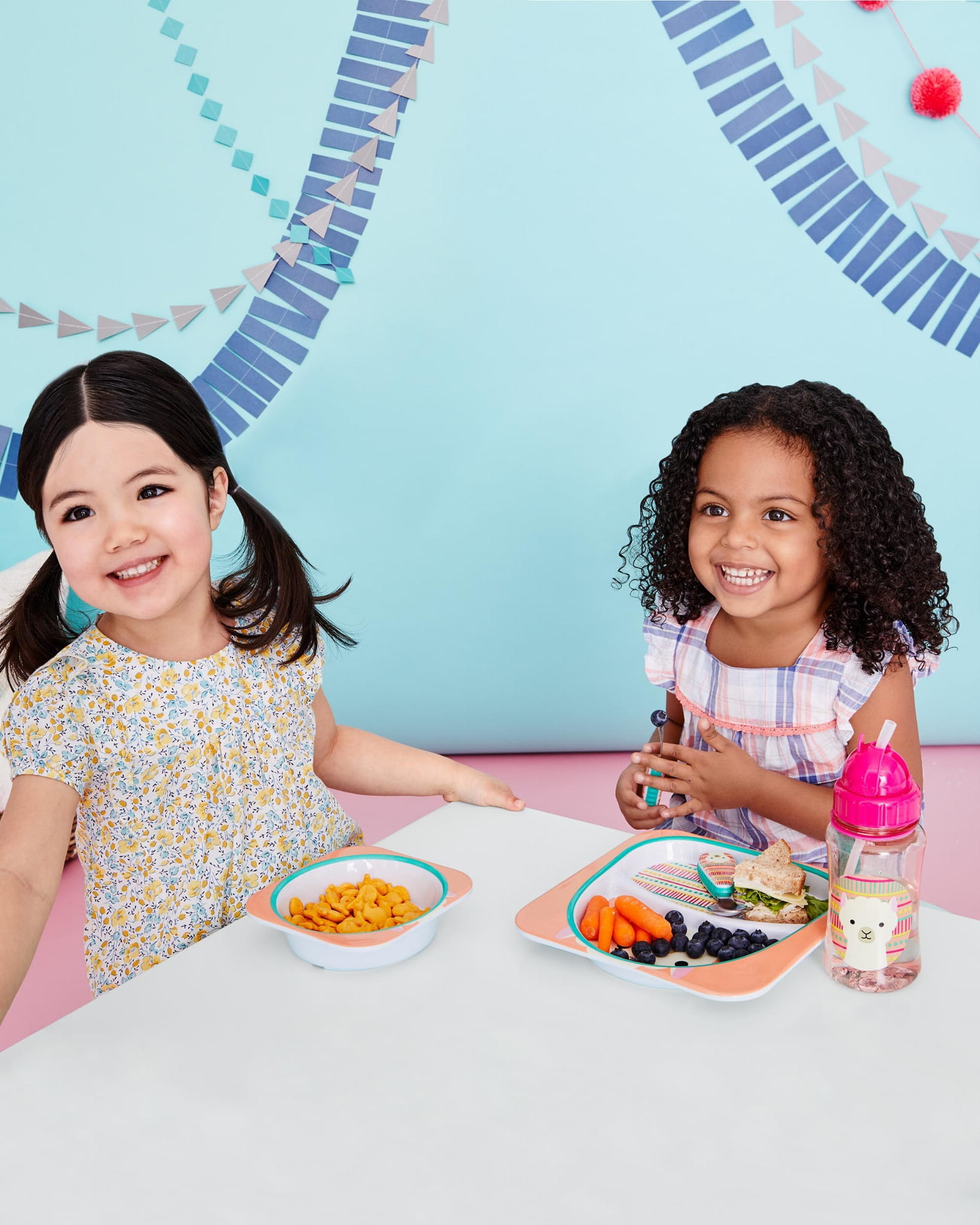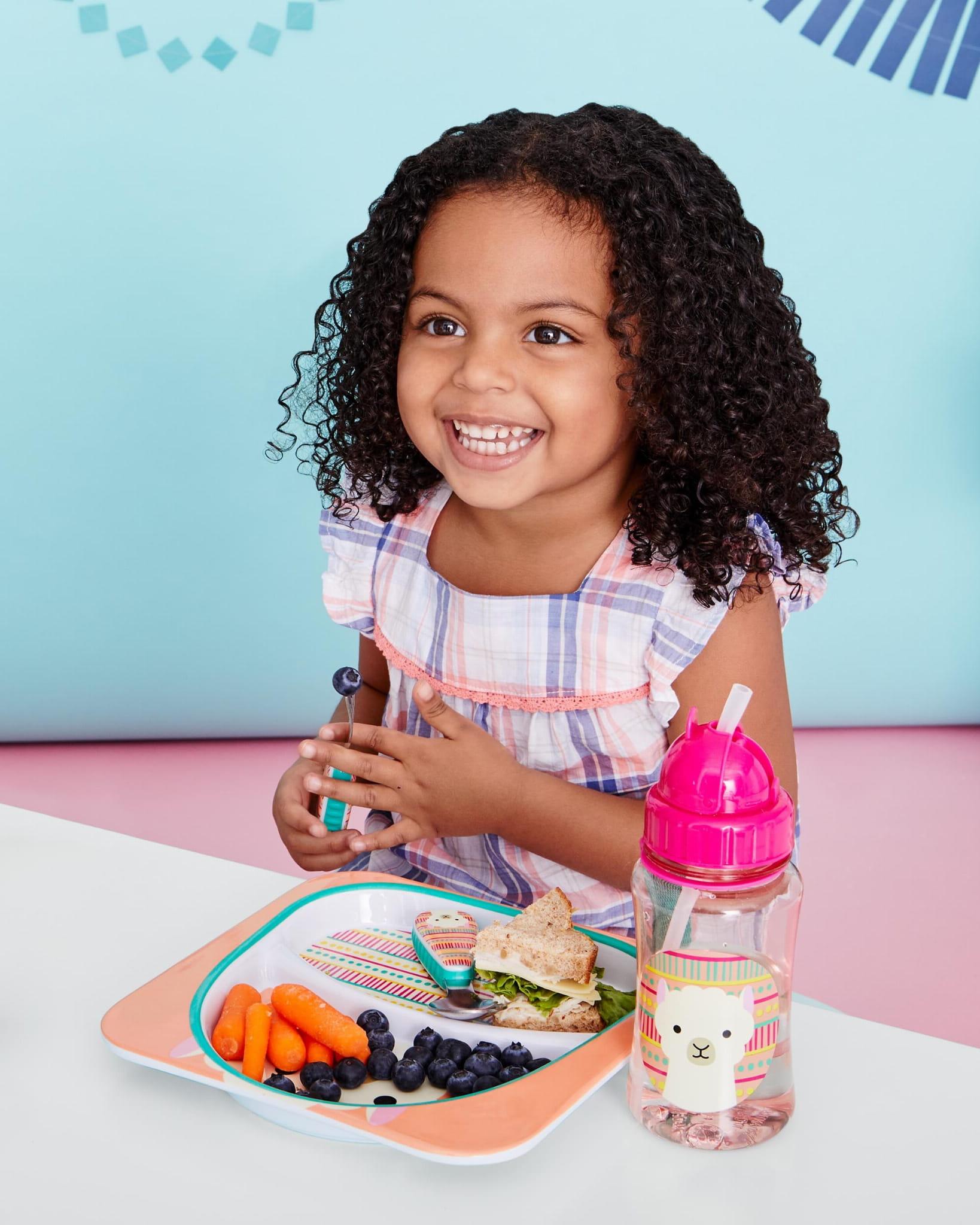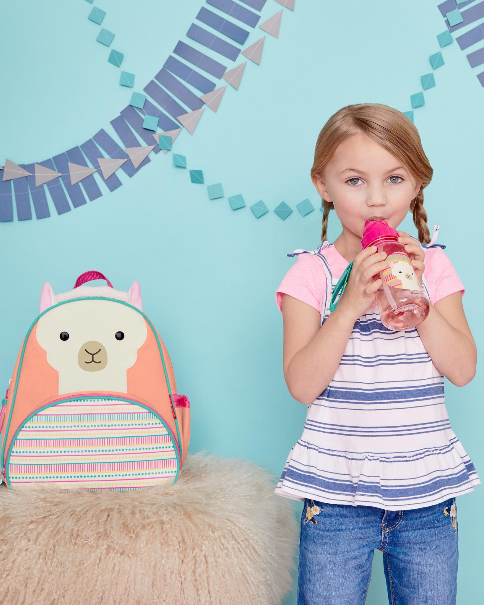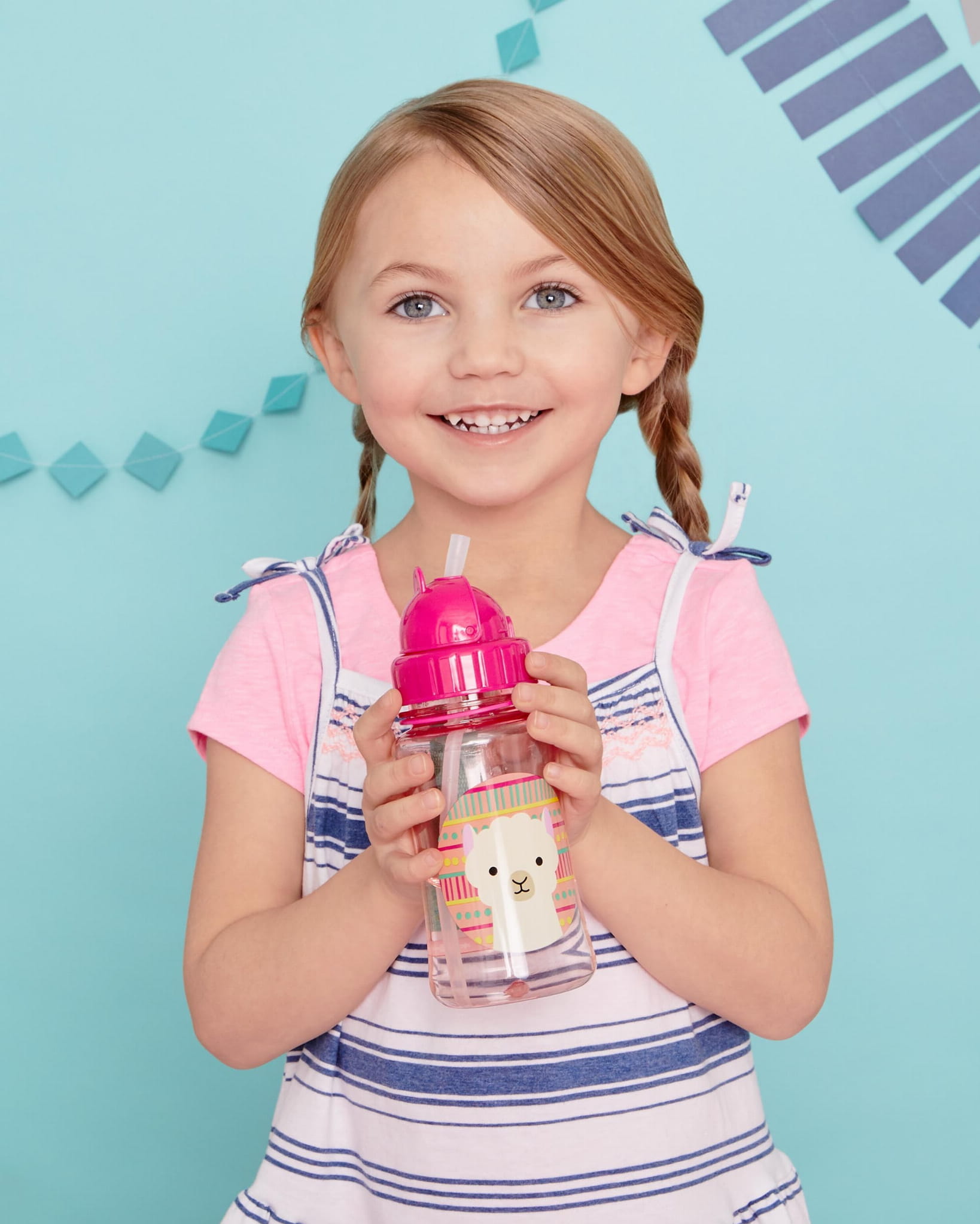 Bidon Skip Hop Zoo Straw Bottle Llama ze słomką, idealna butelka dla dziecka do picia wody lub nawadniających napojów. Ulubiony na całym świecie dziecięcy bidon, praktyczny, poręczny, wesoły i zachęcający do picia. Niezastąpiony na spacerze, w przedszkolu i szkole, klubiku, na wycieczce, czy w domu. Butelka, która jest zawsze pod ręką, szybko zaspokoi pragnienie. Nie kapie i nie przecieka, może być trzymany do góry nogami bez obaw o rozlanie, polecany bidon już dla rocznych dzieci. Łatwe otwieranie poprzez przesunięcie daszka umożliwia dzieciom samodzielną obsługę, a zamknięcie chowa też słomkę pod wieczko. Opływowy kształt dobrze trzyma się w dziecięcych rączkach, a praktyczna mini smycz za rzep ułatwia chwytanie, przenoszenie butelki oraz zaczepienie do wózka, torebki, czy plecaka.