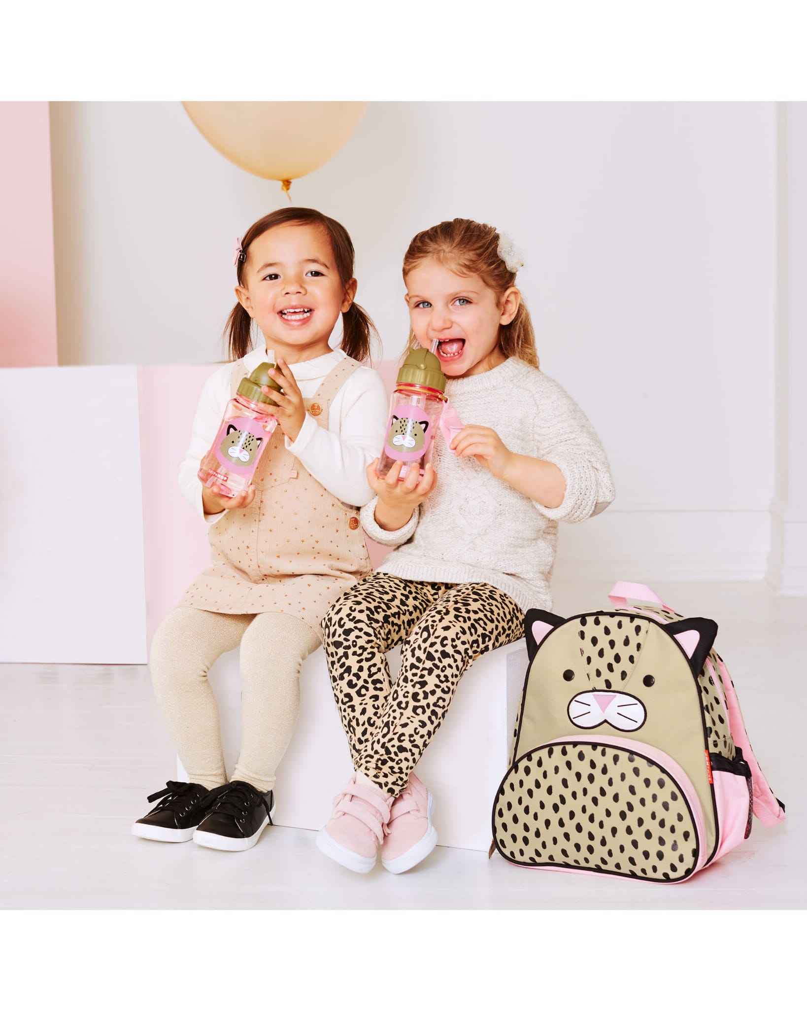 Bidon Skip Hop Zoo Straw Bottle Leopard ze słomką, idealna butelka dla dziecka do picia wody lub nawadniających napojów. Ulubiony na całym świecie dziecięcy bidon, praktyczny, poręczny, wesoły i zachęcający do picia. Niezastąpiony na spacerze, w przedszkolu i szkole, klubiku, na wycieczce, czy w domu. Butelka, która jest zawsze pod ręką, szybko zaspokoi pragnienie. Nie kapie i nie przecieka, może być trzymany do góry nogami bez obaw o rozlanie, polecany bidon już dla rocznych dzieci. Łatwe otwieranie poprzez przesunięcie daszka umożliwia dzieciom samodzielną obsługę, a zamknięcie chowa też słomkę pod wieczko. Opływowy kształt dobrze trzyma się w dziecięcych rączkach, a praktyczna mini smycz za rzep ułatwia chwytanie, przenoszenie butelki oraz zaczepienie do wózka, torebki, czy plecaka.