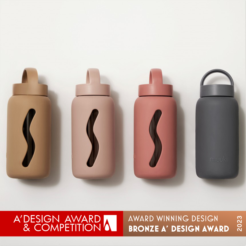 Szklany Bidon na wodę Muuki ma silikonowe etui, został zaprojektowany, aby monitorować poziom nawodnienia, pomagać w zaspokajaniu dziennego, zalecanego zapotrzebowania na płyn, co ma olbrzymi wpływ na zdrowie, dobre samopoczucie i piękną cerę.