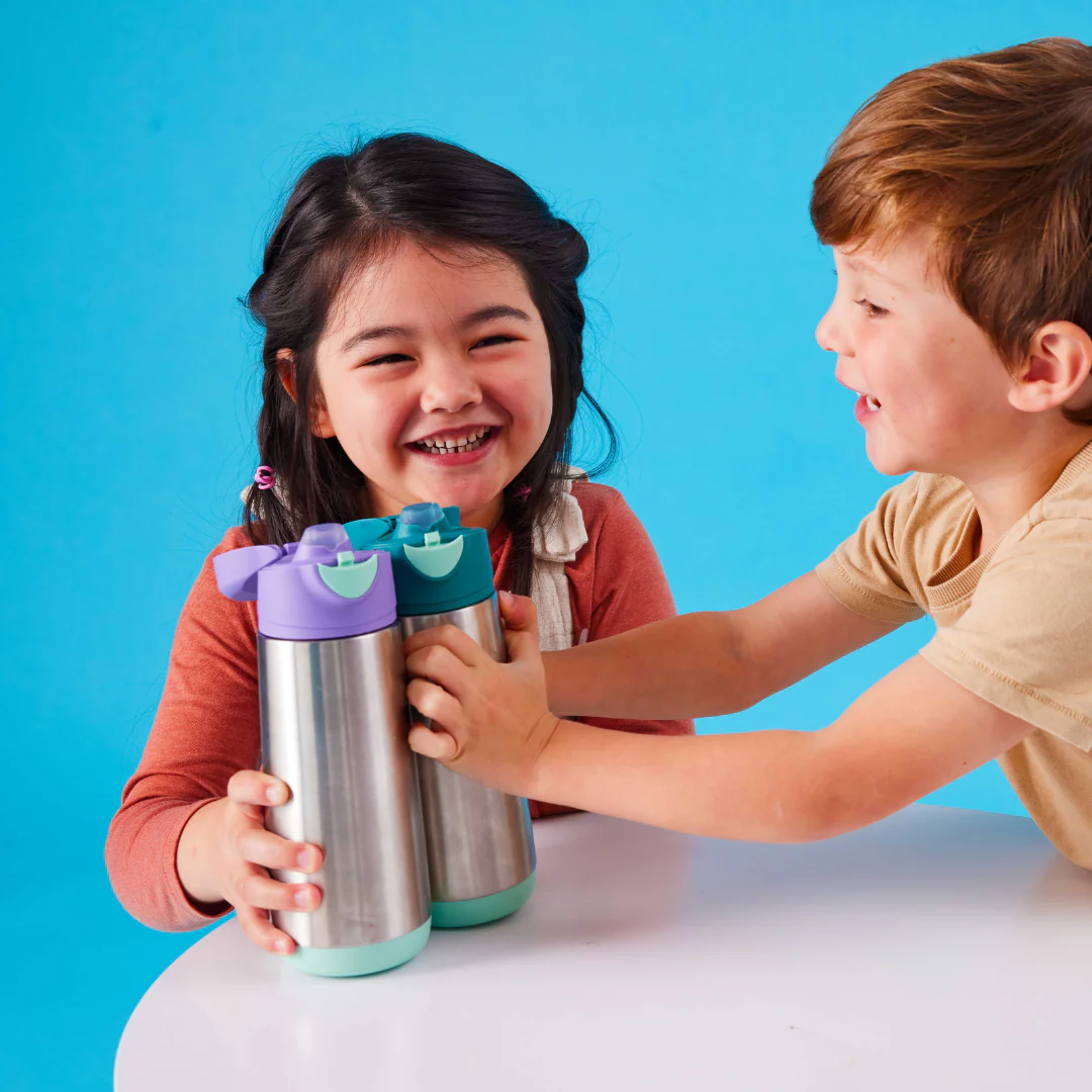Termiczna butelka b.box - z silikonowym ustnikiem, podwójnymi izolowanymi ściankami, szybkim systemem otwierania na przycisk i szczelnym zamknięciem. Dzięki podwójnym ścianką ze stali nierdzewnej utrzymuje napój w pożądaną temperaturę jeszcze dłużej: ciepły do 8 godzin, schłodzony do 15 godzin. Bidon nie przecieka, ma silikonowy uchwyt do łatwego przenoszenia i zawieszania. Pojemność bidonu 500 ml w sam raz by nawonić w szkole, na treningu, czy podczas wycieczki spragnione lub zmarznięte dziecko. Termobutelka b.box jest łatwa w czyszczeniu, a silikonowy ustnik można wymienić na nowy (do kupienia w naszym sklepie), gdy się zużyje.