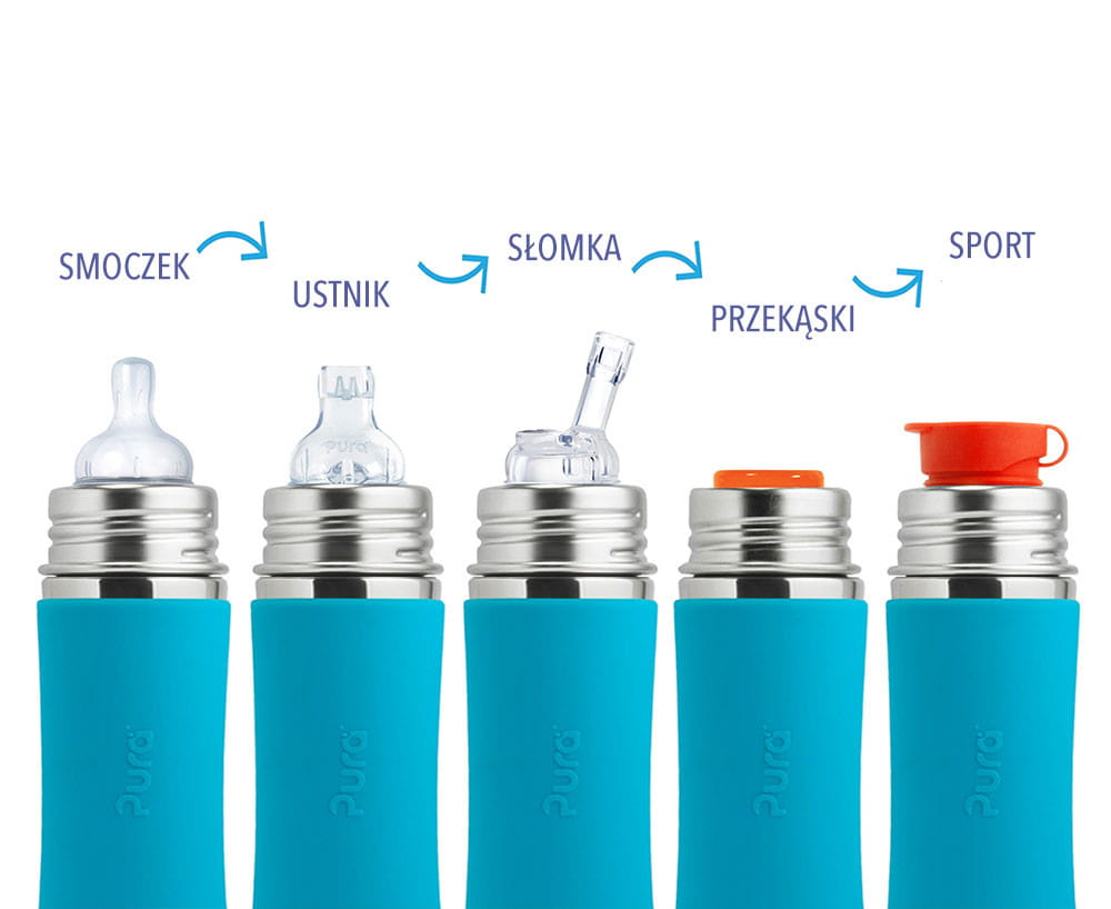 Baby Grows… Bottle Evolves™ – butelki PURA dostosowują się do Twoich potrzeb. Nie kupuj za każdym razem nowej butelki. Wystarczy zmienić butelkę dla niemowląt lub butelkę z ustnikiem na butelkę ze słomką, a później na sportową nakrętkę, zmieniając jedynie część silikonową. Oszczędzaj pieniądze i przyrodę.