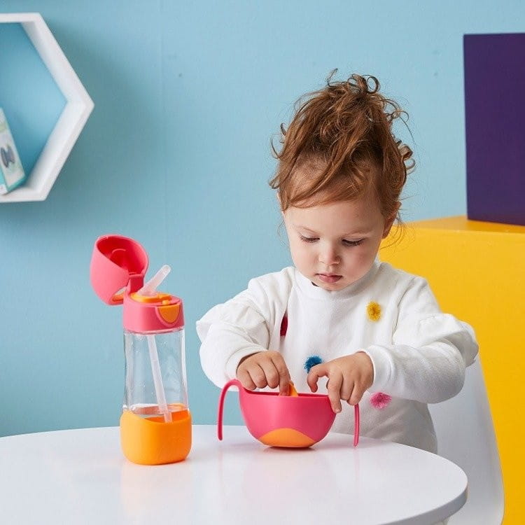 Tritanowa butelka B.box ze słomką to australijska jakość i niezawodność. Idealna butelka dla dzieci do szkoły i przedszkola, na wycieczki i wyjazdy. Tritan jest dobrą alternatywą szkodliwego plastiku i nie tłucze się jak szkło. Trwały materiał, wolny od Bpa i innych szkodliwych substancji jakie uwalnia plastikowa butelka. Trójkątny kształt butelki na wodę jest łatwy w trzymaniu, słomka usadowiona pod kątem daje możliwość wypicia wody do końca, jest wymienna. Butelka B.box jest wyposażona w system łatwego, szybkiego otwierania na przycisk, szczelna nakrętka zabezpiecza przed rozlaniem i przeciekaniem, uchwyt umożliwia trzymanie butelki w ręce lub przypięcie do paska. Na spodzie antypoślizgowy silikon.