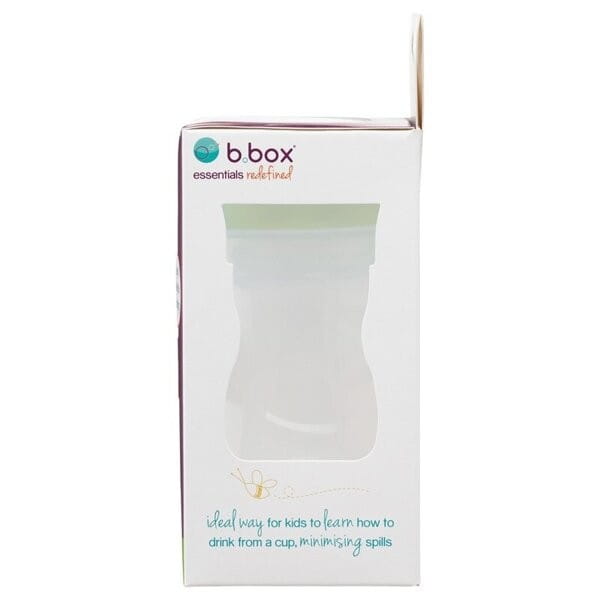 Kubek treningowy Training Cub B.box służy dzieciom do nauki picia ze szklanki, jest następca innowacyjnego bidonu b.box. Australijski kubek b.box pozwala pić dzieciom tak jak lubią, czyli naśladując dorosłych, a przy tym minimalizuje rozlewanie się napoju, mokre ubranka oraz bałagan. System wieczka w kubku treningowym wprowadza płyn w obręcz i umożliwia swobodny przepływ przez otwór w ustniku pokrywki. W wieczku umieszczone jest okienka, dzięki czemu dzidzi widzą co piją, ile im zostało napoju oraz kąt nachylenia kubka.