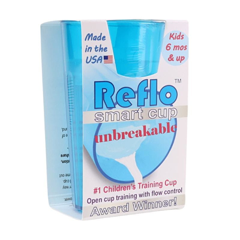 Reflo góruje nad niekapkami tym, że jest naturalny dla zgryzu, nie krzywi łuków zębowych i wpływa pozytywnie na rozwój mowy. Dodatkowo zastosowanie innowacyjnej wkładki sprawia, że strumień napoju jest zawsze równomierny niezależnie od kąta nachylenia. Zapobiega to aspiracji napoju i ułatwia naukę picia z otwartego naczynia. Reflo zostało stworzone przez rodziców dla rodziców w trosce o zdrowie dzieci! Kubek został zaprojektowany w USA i tam właśnie jest produkowany.