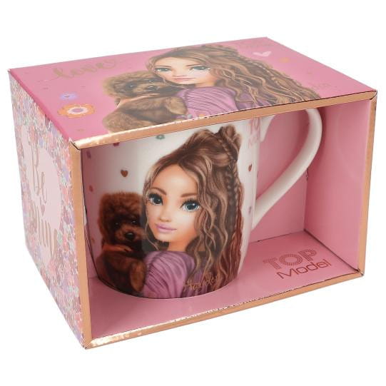 Ten uroczy kubek TOPModel to idealne połączenie elegancji i słodyczy! Jego powierzchnia ozdobiona jest delikatnymi serduszkami i kwiatami, a centralnym elementem jest stylowy modelkowy motyw z przesłodkim pieskiem. Całość dopełnia inspirujący napis w stylu handlettering oraz luksusowe złote zdobienia.