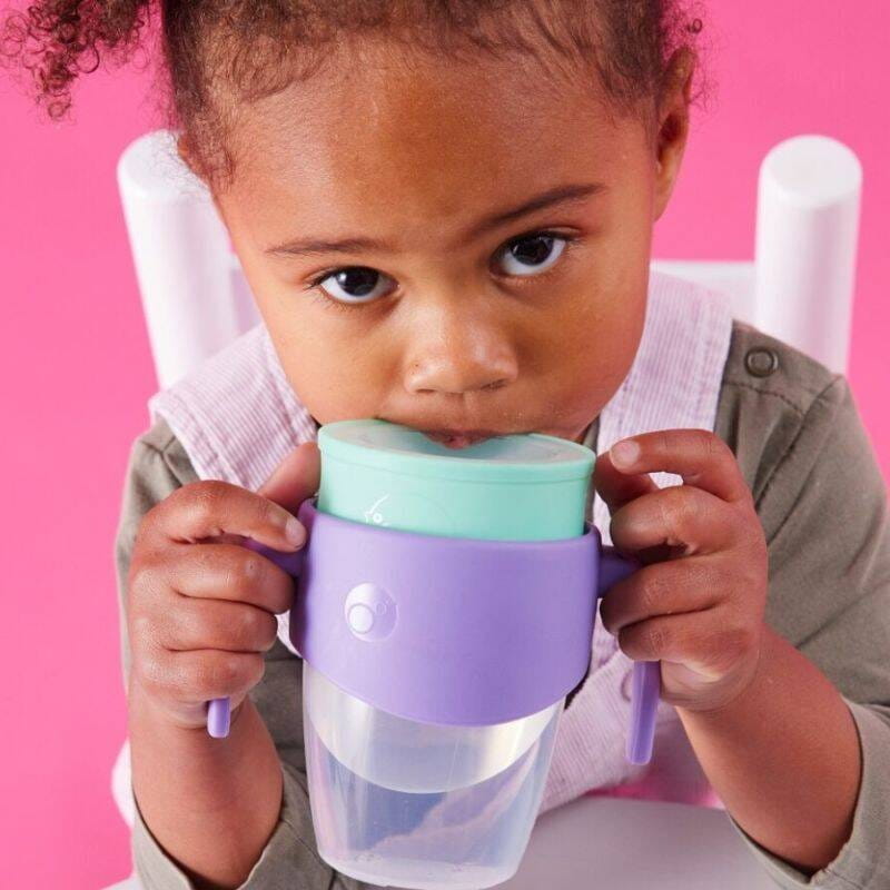 Zalecamy od co najmniej 6 miesiąca życia do momentu, gdy będziesz mieć pewność, że Twoje dziecko poradzi sobie z piciem z otwartego kubka w domu lub w podróży. Niektóre maluchy mogą od razu przyzwyczaić się do kubka 360, a inne mogą potrzebować kilku prób, aby przyzwyczaić się do silikonowej obręczy i przepływu, więc wykaż się cierpliwością. Uchwyty są szerokie, aby dzieci mogły je łatwo chwycić, ale także po to, aby rodzice mogli pomóc im w pierwszych dniach nauki.