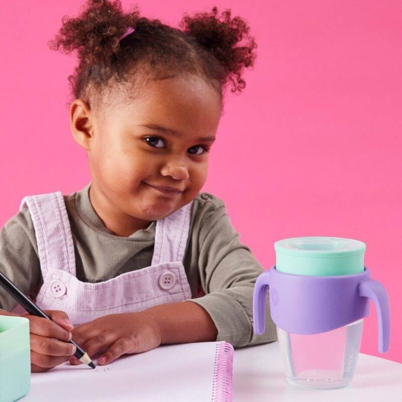 Kubek treningowy b.box 250 ml dla dzieci do nauki picia jak ze szklanki. Kubek 360° wspomaga dzieci w nauce samodzielności. Innowacyjna obręcz z miękkiego silikonu zachęca dzieci do picia i doświadczania. Im mocniej szkrab przyciska ustami silikon, tym więcej napoju wypływa. Dzięki temu dzieci jednocześnie uczą się kontroli nad przepływem i budują pewność siebie.