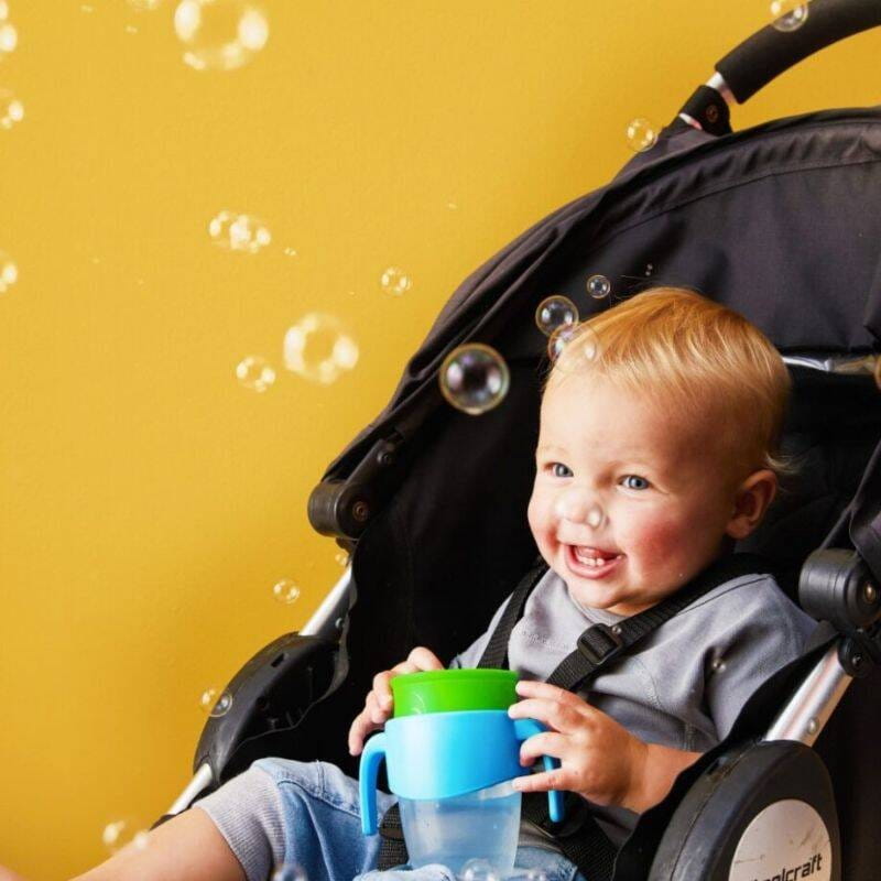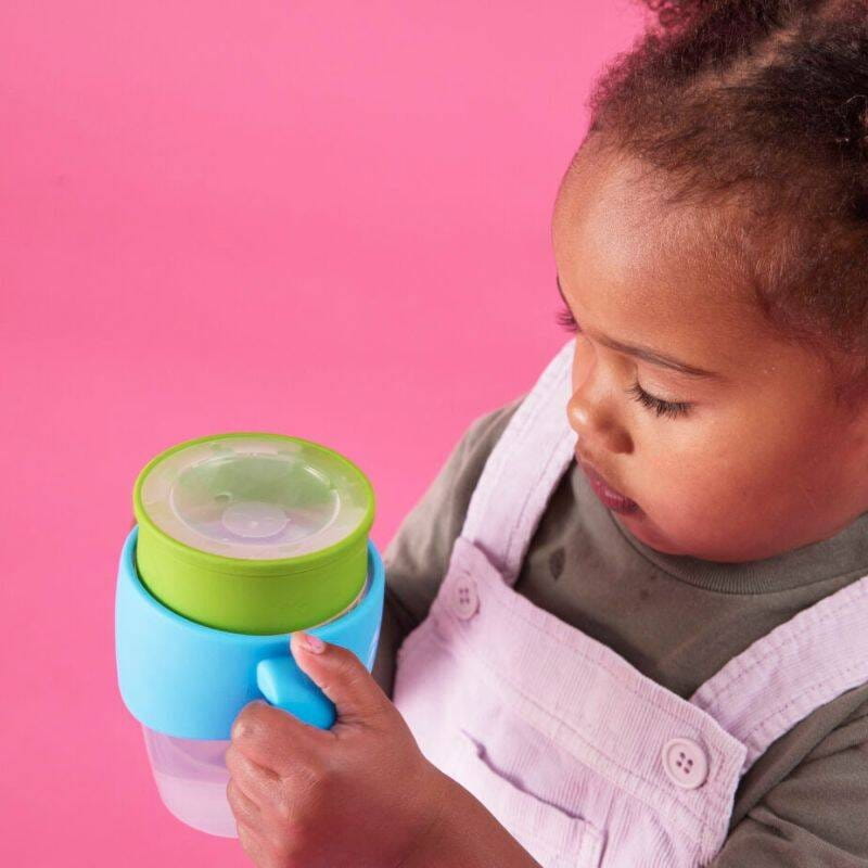 Zalecamy od co najmniej 6 miesiąca życia do momentu, gdy będziesz mieć pewność, że Twoje dziecko poradzi sobie z piciem z otwartego kubka w domu lub w podróży. Niektóre maluchy mogą od razu przyzwyczaić się do kubka 360, a inne mogą potrzebować kilku prób, aby przyzwyczaić się do silikonowej obręczy i przepływu, więc wykaż się cierpliwością. Uchwyty są szerokie, aby dzieci mogły je łatwo chwycić, ale także po to, aby rodzice mogli pomóc im w pierwszych dniach nauki.
