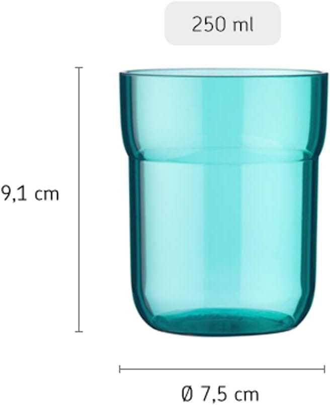 Dziecięca szklanka o pojemności 250 ml wykonana z mocnego plastiku. Przezroczysty kubek ma ergonomiczny kształt, ułatwia dzieciom samodzielne picie, krawędzie kubka ułatwiają trzymanie (zapieranie paluszkami) i podnoszenie do ust. Turkusowy kubek Mepal jest lekki i odpowiednio wyprofilowany, dzięki czemu pewnie leży w dziecięcej rączce. Podczas nalewania i picia do kubeczka dziecko może obserwować poziom napoju. Od dziś posiłek będzie przyjemnością. Idealny kupek także do przedszkola, na szczoteczkę i pastę, stoi stabilnie.