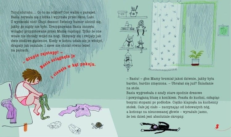 Basia i przedszkole to opowieść o dniu, który zapowiadał się wyjątkowo nieciekawie. Dziewczynka jest w kiepskim humorze z powodu złej pogody i nieobecności przyjaciółki. Jednak okazuje się, że nawet najgorszy dzień może się okazać dobry, jeśli zmienimy do niego nastawienie, a deszcz nie przeszkadza, gdy mamy z kim się bawić.
