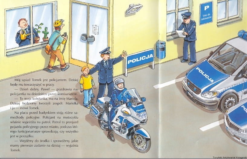 Mam przyjaciela policjanta - poznajemy policjanta Tomka, któremu będziemy towarzyszyć w pracy. Zobaczymy jak wygląda praca na komisariacie, poznamy telefony alarmowe, udamy się zabezpieczyć miejsce wypadku drogowego, zostaniemy wezwani do włamania, przyjrzymy się kontroli prędkości, będziemy ochraniać demonstrację i przyjrzymy się helikopterowi policyjnemu. Czy znasz atrybuty policjanta?