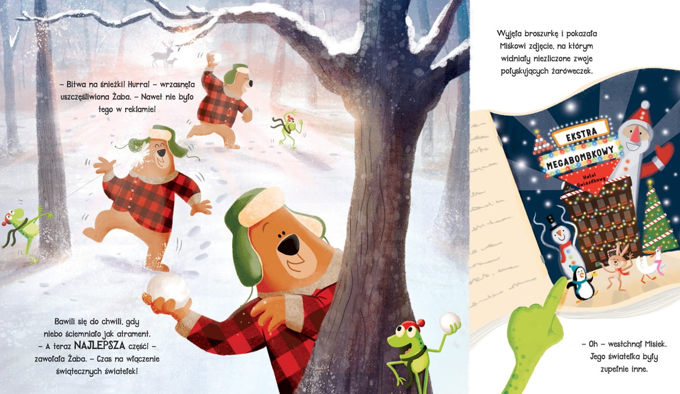 Misiek przygotowuje się na spokojne, leniwe Boże Narodzenie. Żaba nie może się doczekać świecidełkaśnych, bombkastycznych świąt w Megabombkowym Hotelu Gwiazdkowym. Żadne z nich nie spodziewa się, co wyniknie z ich spotkania…