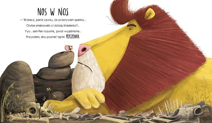 Poznajcie małą Mysz, która najbardziej na świecie chciałaby żeby inni zwracali na nią uwagę. Bycie małym nie jest łatwe... Mysz chciałaby zostać zauważona, lecz jej rozmiar okazuje się DUŻYM problemem. Dochodzi do wniosku, że jedynym stworzeniem, które może jej pomóc, jest wielki i groźny lew. Kiedy zbiera się na odwagę, by poprosić go o lekcje ryczenia dzieje się coś, co całkowicie ją zaskakuje. Okazuje się, że siła wcale nie musi tkwić w rozmiarze.