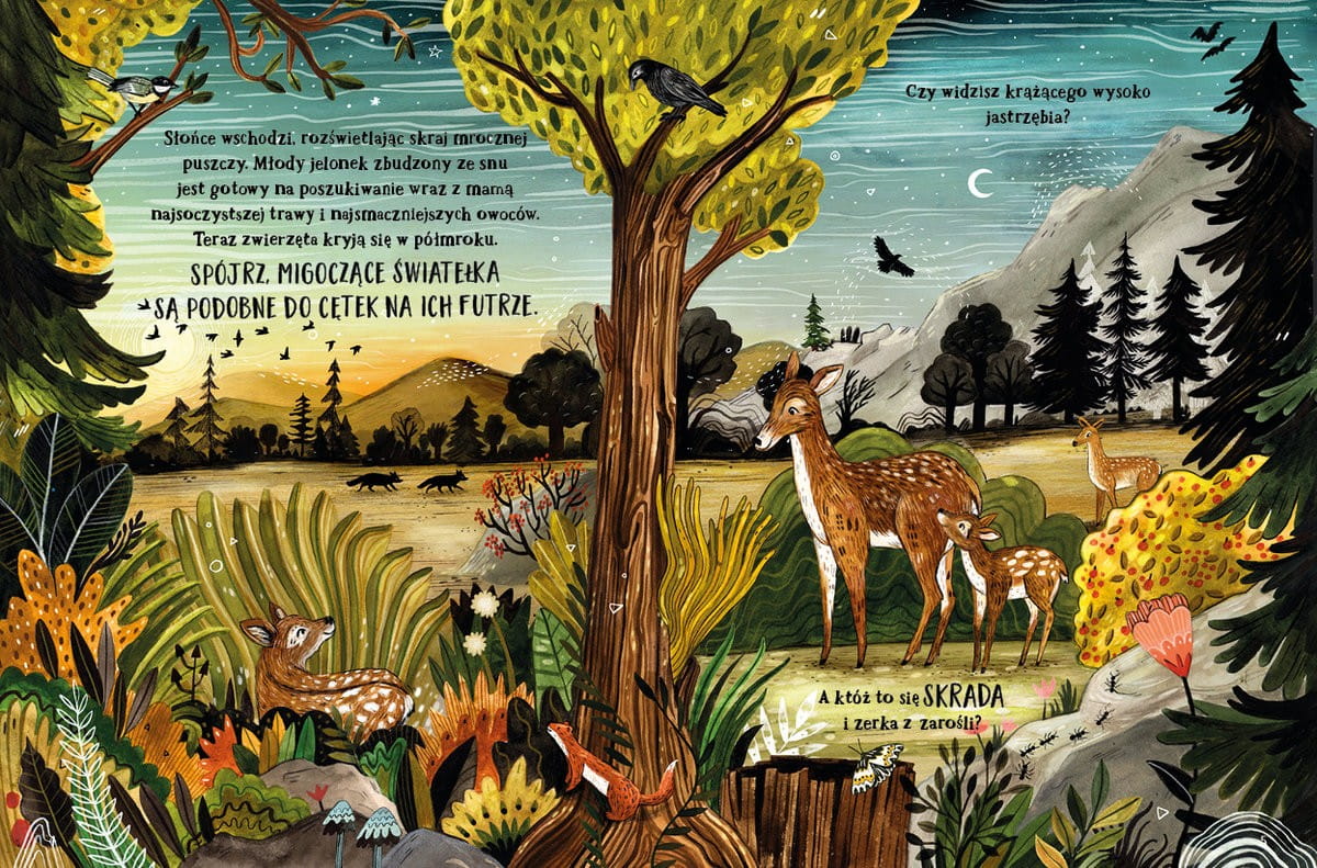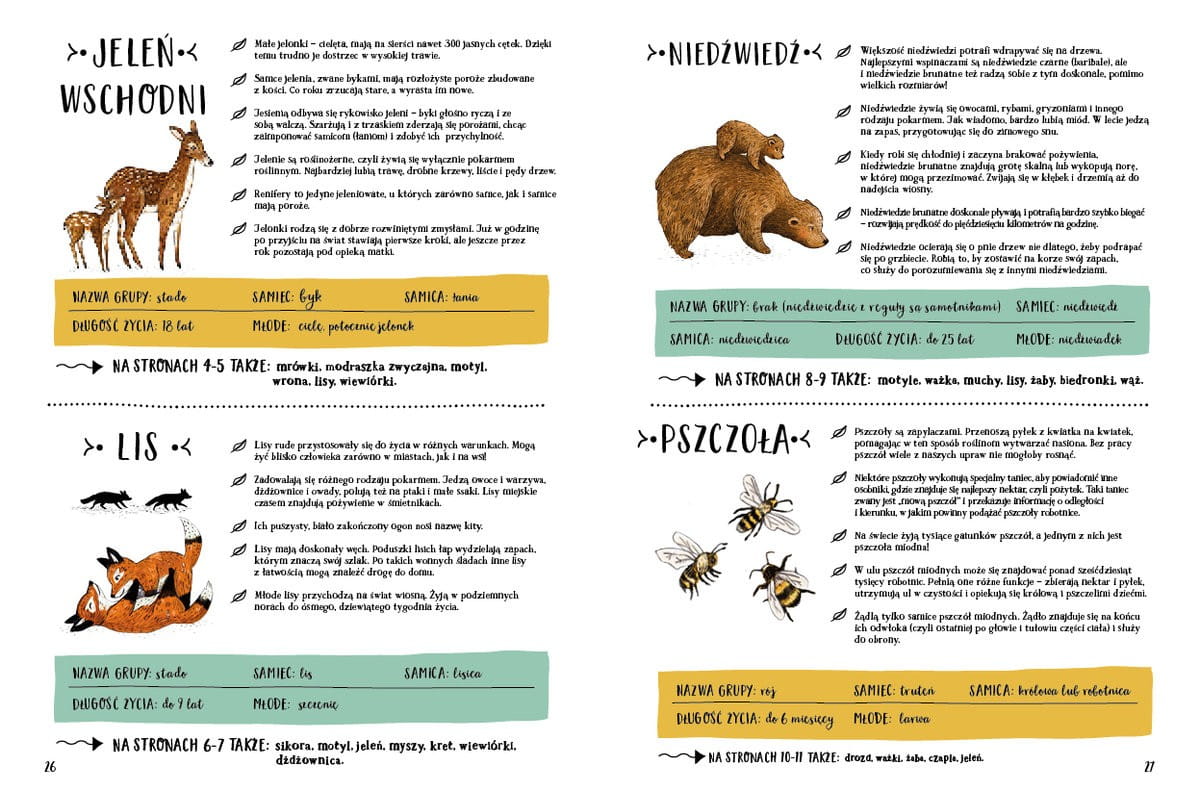 Wyrusz do cudownego świata leśnych stworzeń, zobacz z bliska jak żyją mieszkańcy lasu, z kim zawierają sojusze, a przed kim muszą uciekać. Zobacz jakie mają zwyczaje zwierzęta, które, prowadzą nocny tryb życia, a jakie te, które już od świtu poszukują pożywienia. Baw się w odnajdywanie szczegółów na barwnych ilustracjach.