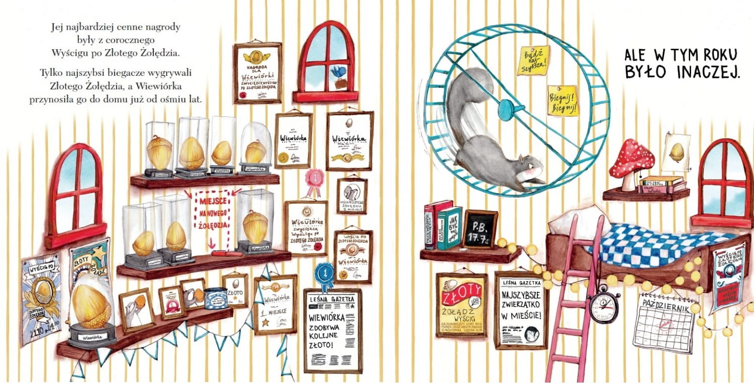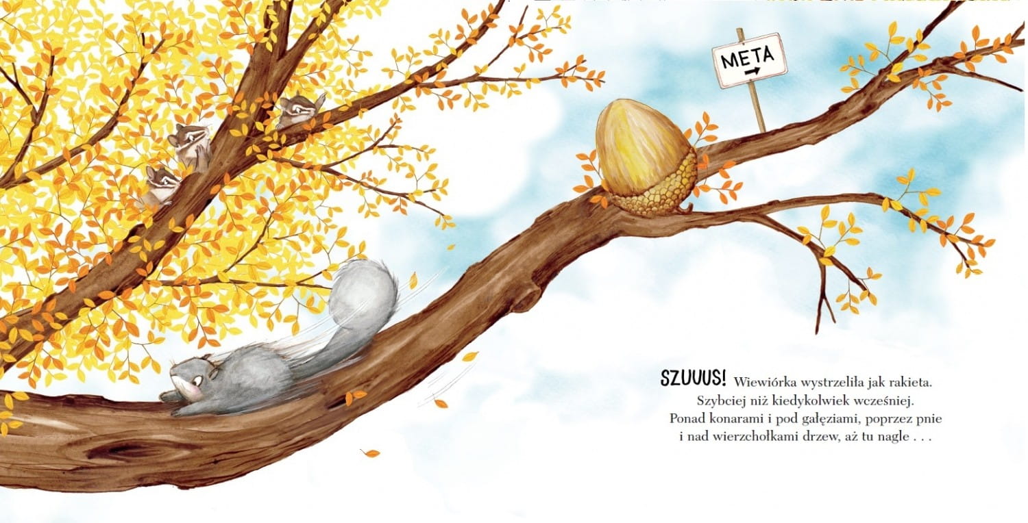 Wiewiórka UWIELBIA zwyciężać! Jest najszybsza w całym lesie i zawsze wygrywała Wyścig po Złotego Żołędzia. Ale teraz to będą zawody drużynowe. Królik, Żółw i Bóbr chcą być w jej drużynie. Wiewiórka nie jest zadowolona... a będzie jeszcze mniej zadowolona, kiedy zacznie się wyścig...