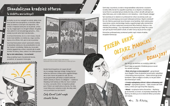 Karol był historykiem sztuki i pochodził z dobrej krakowskiej rodziny (co nie przeszkodziło mu też być niezłym rozrabiaką). Założę się, że już jako dziecko oglądał ołtarz mariacki jak wielki komiks. Te kolory, złoto, srebro! I te cudne postaci! Był w nim zakochany – i to na bank!”