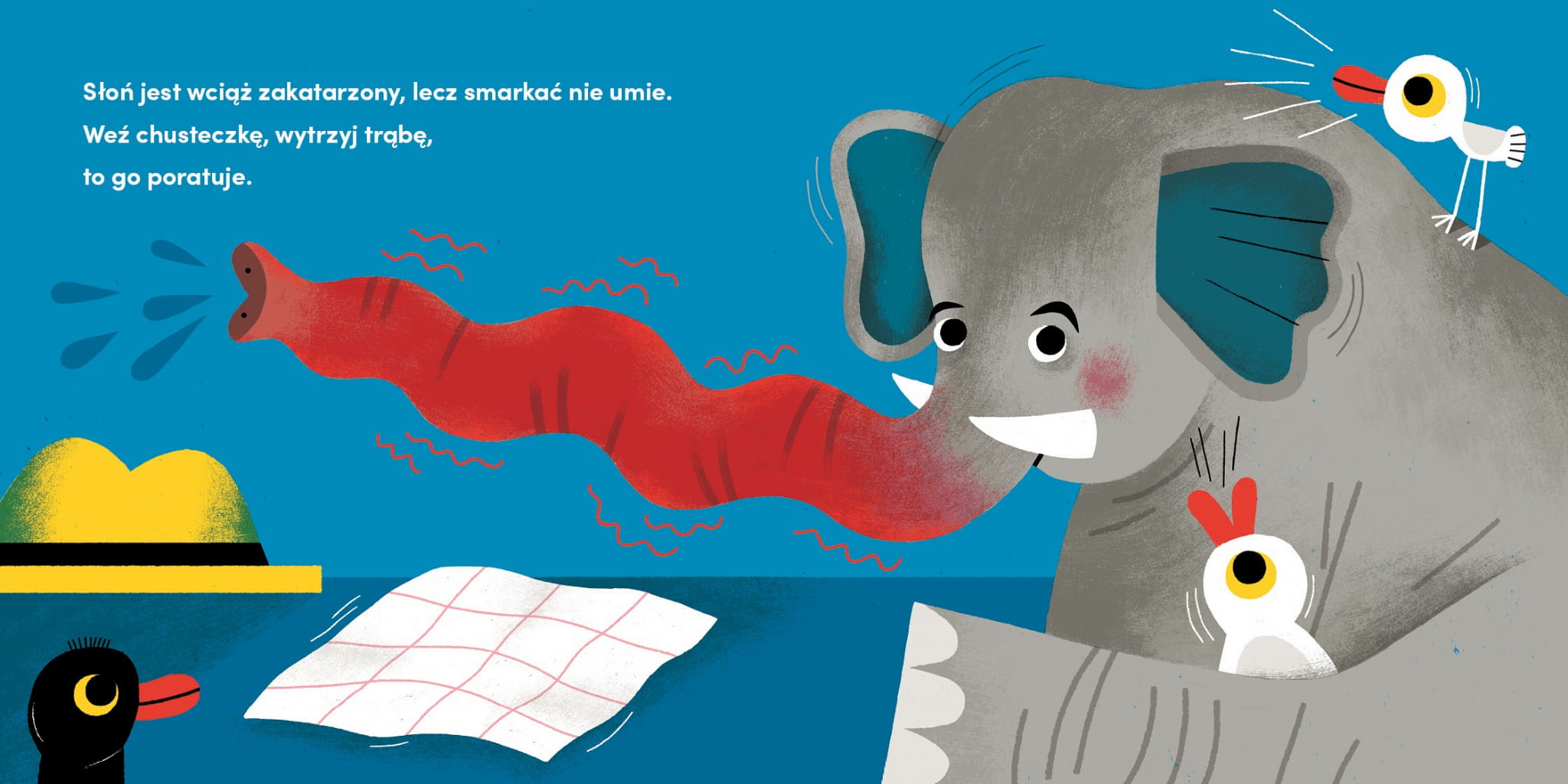 „Cześć i czołem. Góra dołem!” to brawurowo zrymowana i zilustrowana kartonowa książka dla najmłodszych, która zaprasza do aktywności podczas czytania i angażuje w niesienie pomocy małym przyjaciołom.