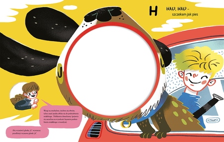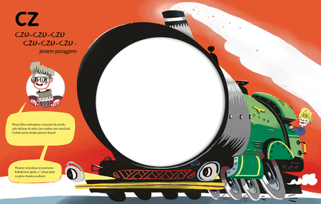 Angażująca i zabawna książka, która pomoże dzieciom w nauce wymowy. Każda rozkładówka ma otwór, w który można włożyć głowę i świetnie się bawić przy udawaniu zwierząt, pojazdów i maszyn. Pomogą w tym Jano i Wito, bohaterowie bestsellerowych książek dla najmłodszych czytelników.