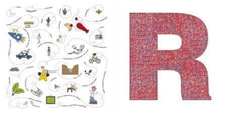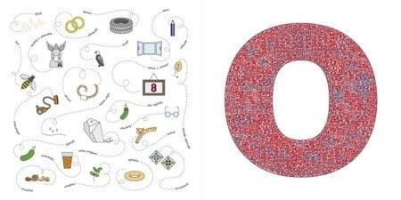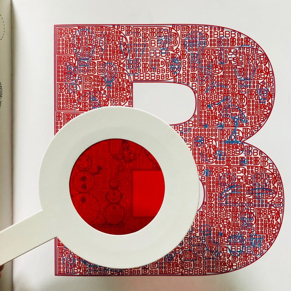 Na każdej stronie widnieje jedna litera, na której przez dołączoną do książki lupę szukamy zabawnych obrazków – zastosowana technika graficzna sprawia, że nie są widoczne na pierwszy rzut oka. Zobacz, czy uda ci się znaleźć planetę w pieluszce, ciężarówkę z agrafkami, piramidę z pomidorów, a może pieniądze na patyku?
