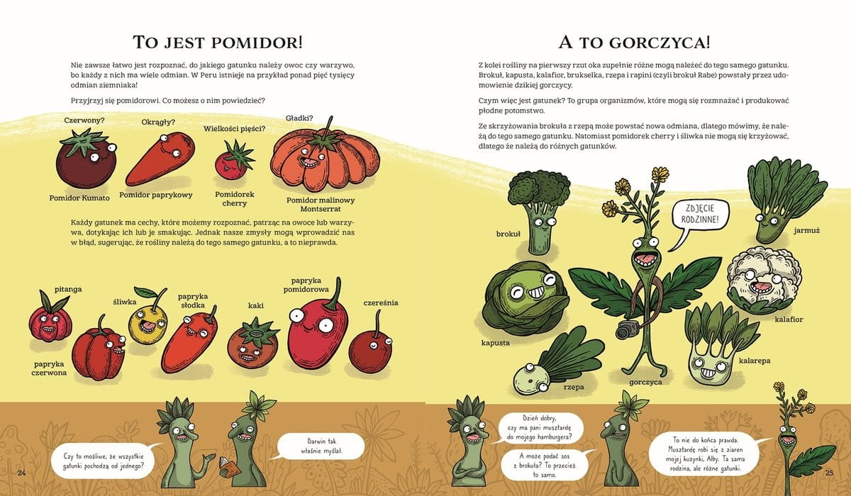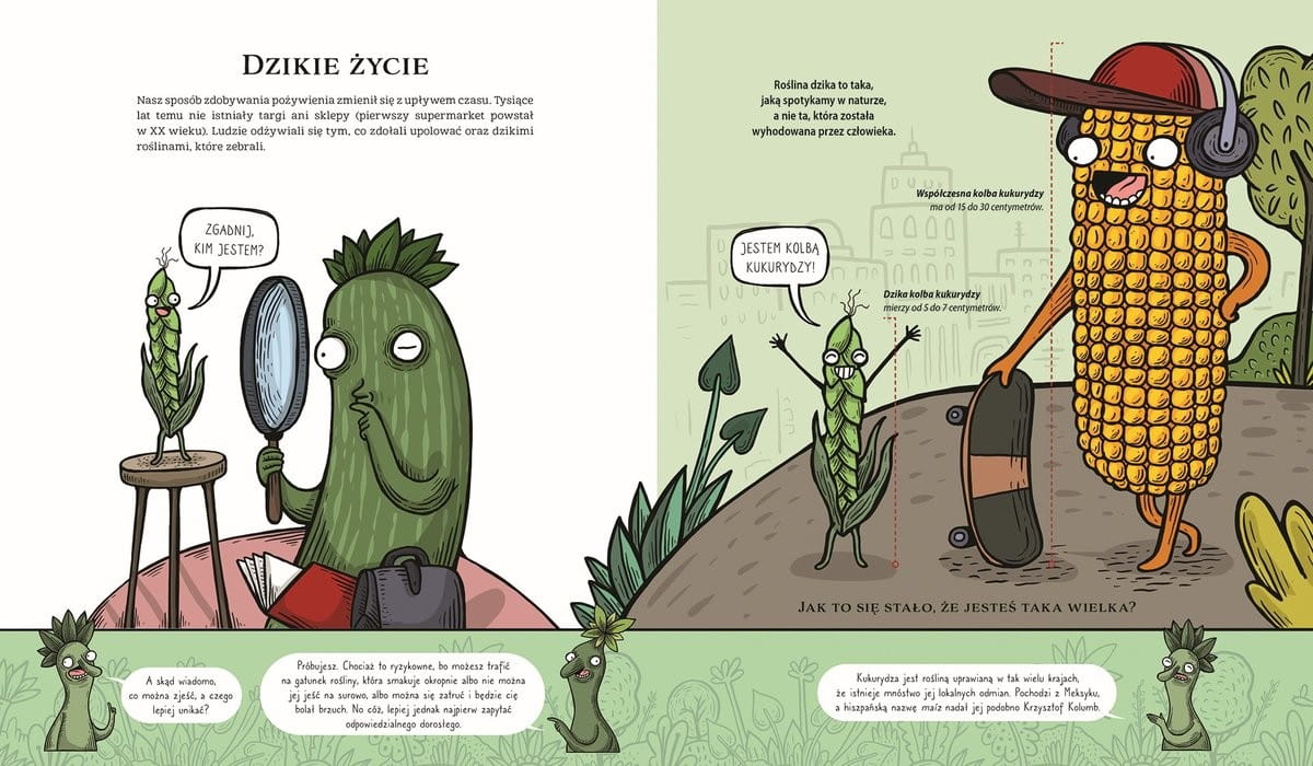 Dlaczego jemy akurat te rośliny, a nie inne? Czy warzywa i owoce zawsze były jadalne? Skąd pochodzą i jak powstają nowe odmiany? Na czym polegają modyfikacje genetyczne i czy są bezpieczne? Ta dowcipna książka śledzi dzieje udomowienia roślin, a zabawny tekst dopełniają atrakcyjne, komiksowe ilustracje znanego hiszpańskiego humorysty.