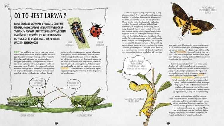 Wszystkie owadzie historie zostały pięknie zilustrowane przez Martę Tęczę.