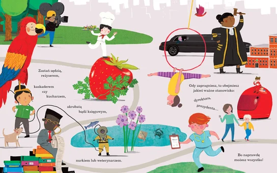 Ilustracje Barry'ego Fallsa urzekają swoją szczegółowością, a czytanie rymowanego tekstu to czysta przyjemność. To wspaniałe, zabawne i prowokujące do myślenia rozważania o tym, dokąd zmierza życie i kim możesz zostać.