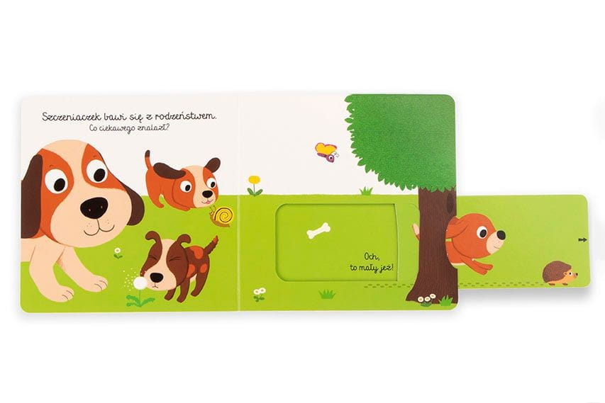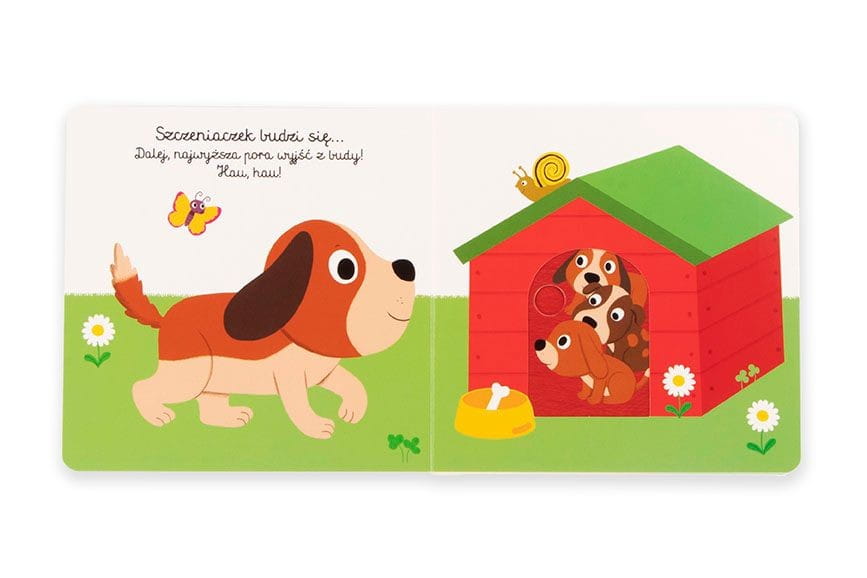 "Dzień dobry, szczeniaczku!" z serii pierwsze bajeczki to ciepłe i proste historyjki oraz ruchome elementy, które zaciekawią każdego malucha. Dzięki temu, że teksty są krótkie, dziecku łatwo jest skupić uwagę od początku do końca.