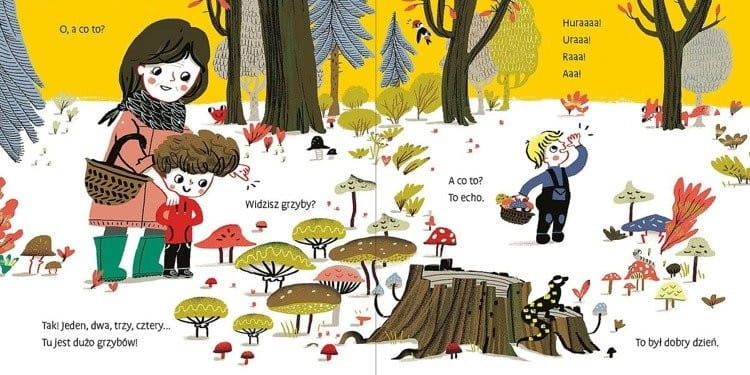 Jano, Wito i tata są w z babcią w lesie. Szukają grzybów, spotkają pająka, kukułkę wilka, dzięciolą, dzika sowę. Wybierzcie się razem z bohaterami na spacer i sprawdźcie, kogo słychać w lesie.