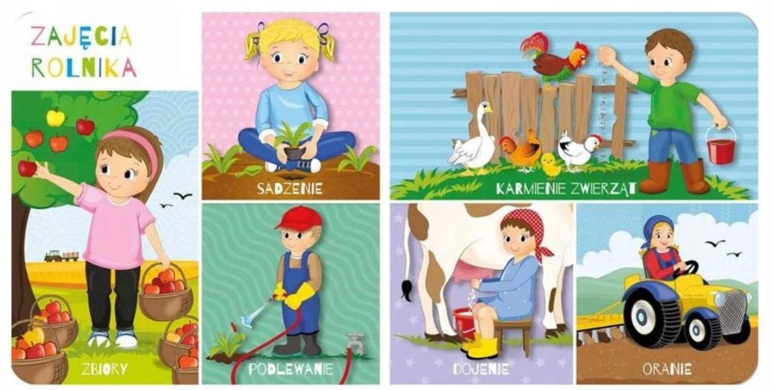 Ćwiczy spostrzegawczość, umiejętność mówienia, wzbogaca zasób słów i wiedzę o otoczeniu. Przeznaczona dla najmłodszych dzieci już od pierwszych miesięcy życia. Wykonana z bezpiecznej foliowanej tektury, odporna na uszkodzenia, z zaokrąglonymi rogami, w przyjaznym formacie dogodnym dla rączek dziecka, przepiękne i barwnie ilustrowana.