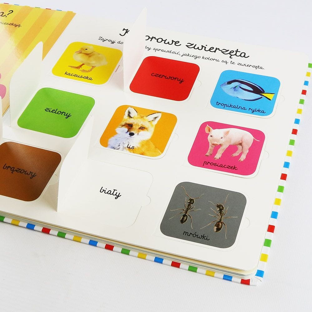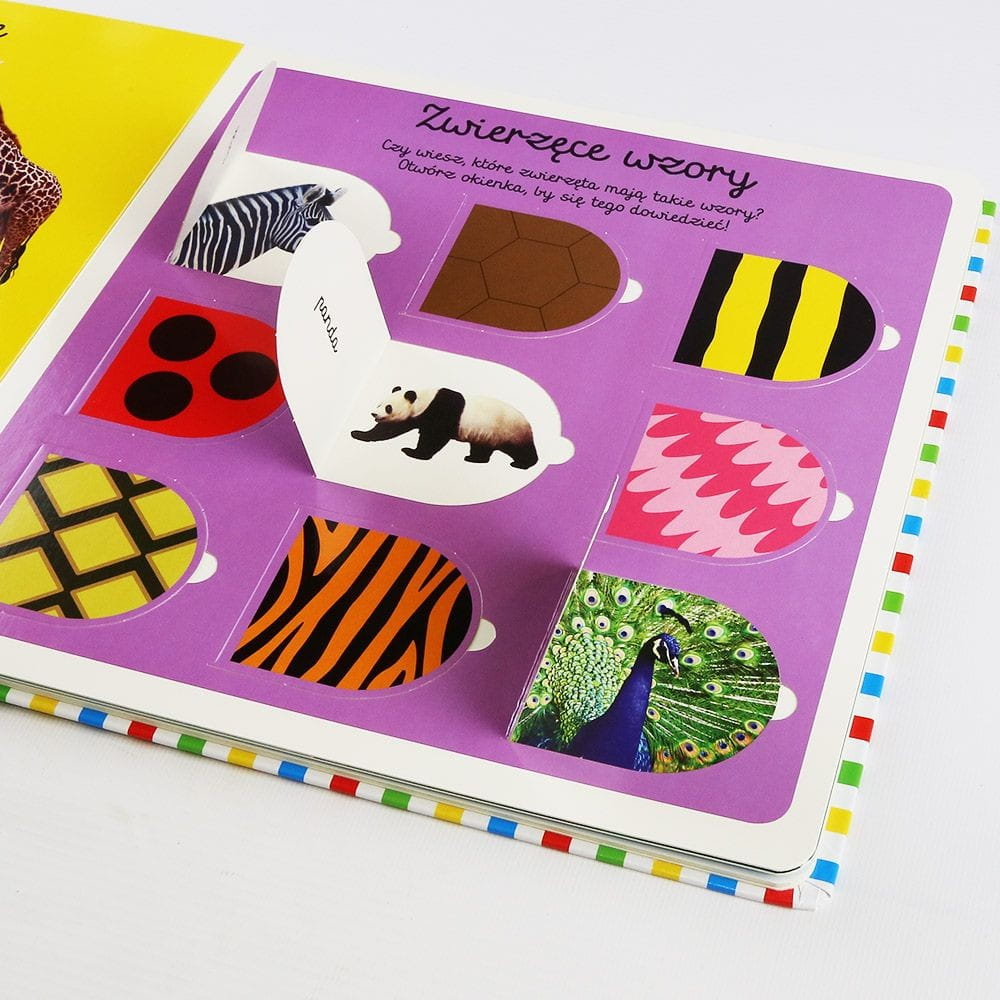 Książeczka z otwieranymi okienkami zabierze dziecko do fantastycznego świata zwierząt, wspiera rozwój mowy, poznawania nowych słów, kolorów, zjawisk. Wspaniała zabawa dla każdego malca, który chce odkrywać nowe rzeczy! Każda strona kryje ciekawe okienka do otwierania, dzieci uwielbiają uchylać okienka, by zajrzeć co kryje się pod spodem. Książka jest interaktywna, pełna niespodzianek, zadań, realnych obrazków zwierząt, maszyn i roślin.