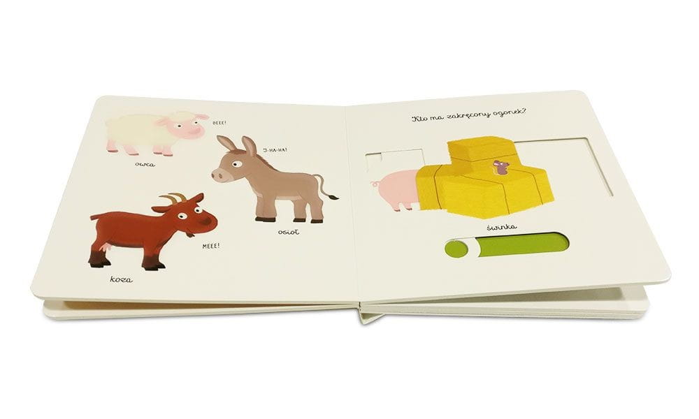 Książeczka z ruchomymi elementami Na wsi to znakomity wstęp do poznania przez maluszków wyglądu i nazw zwierząt wiejskich.