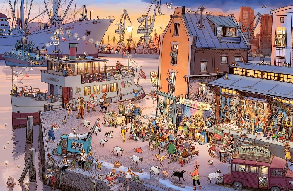 Książka kartonowa obrazkowa o dużym formacie, ulubiona pozycja dzieci prezentuje różne statki oraz życie przybrzeżne i w porcie. Pięknie ilustrowana książka z obrazkami jest nasycona szczegółami do oglądania, opowiadania i odkrywania.
