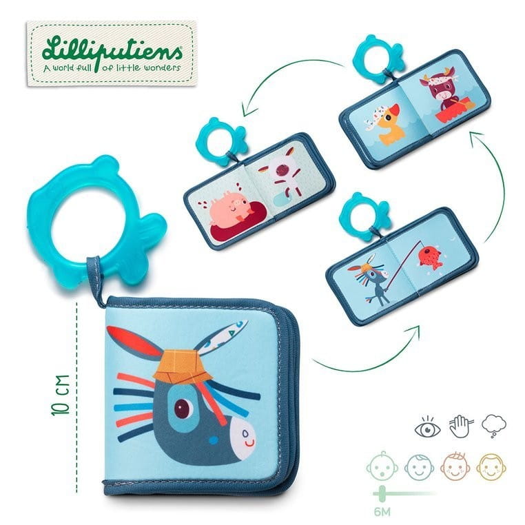 Kąpielowa książeczka Lilliputiens wykonana z miękkiego, łatwego do czyszczenia i szybkoschnącego neoprenu. Książeczka dzięki gryzakowi przynosi ulgę w trudnym okresie ząbkowania, rozwija spostrzegawczość i pobudza wyobraźnię, a jest lekka i ma wygodny rozmiar.