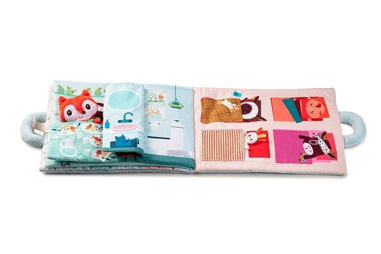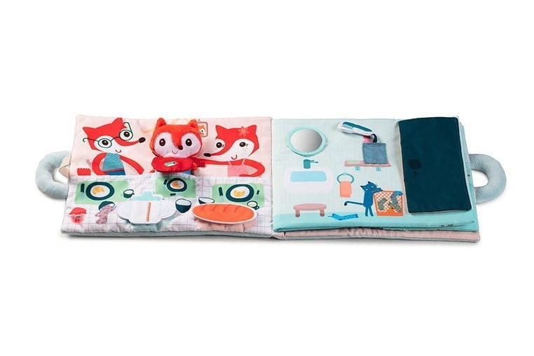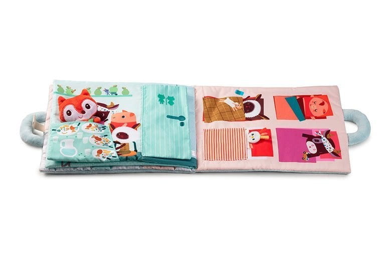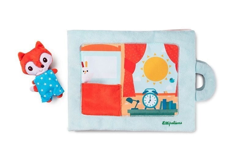Pierwsza książeczka dla dzieci Lilliputiens z małą przytulanką, która jest pełna niespodzianek, sensorycznych elementów i aktywizujących detali.
