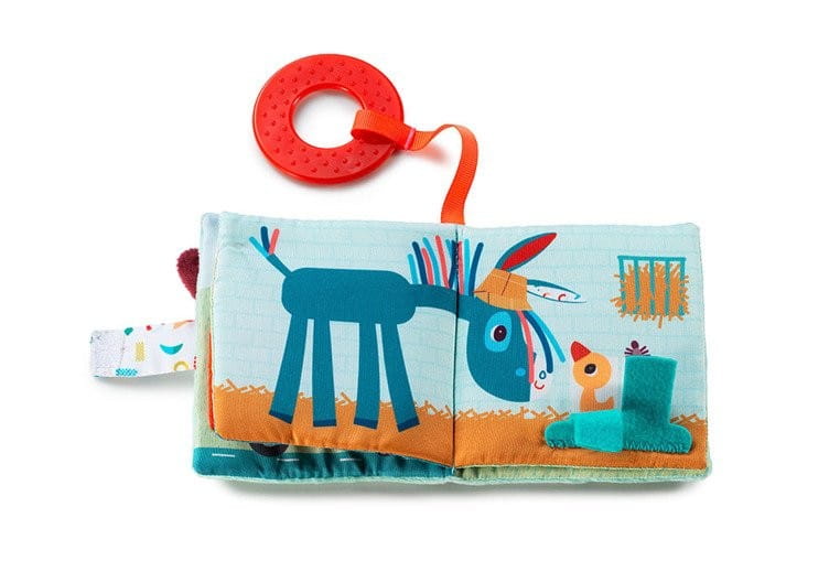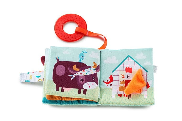 Miękka sensoryczna książeczka o zwierzątkach belgijskiej marki Lilliputiens z przeczepionym gryzakiem dobrze sprawdzi się jako interesująca przywieszka do wózka, łóżeczka, czy fotelika samochodowego. Mini książeczka ma miękkie strony, szeleszczące i ruchome elementy oraz gryzak. Książeczka z gryzakiem przedstawia wiejskie zwierzątka, jest to piękna pierwsza książeczka dla dziecka. Różnorodne materiały oraz zaskakujące dzieci wnętrze sprawia, że aktywizująca książeczka umili spacer podróż samochodem, czy jazdę w wózku. Idealna pierwsza książeczka , która pobudza dziecięcą wyobraźnię i ciekawość, aktywizuje zmysły wzroku, dotyku i słuchu.