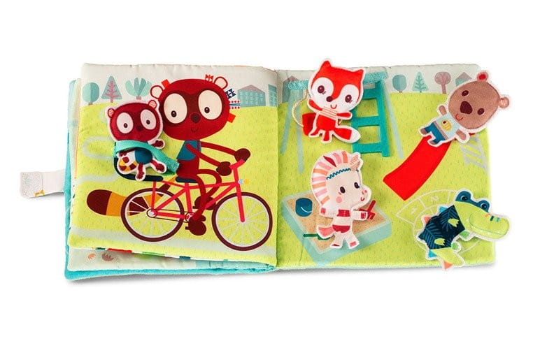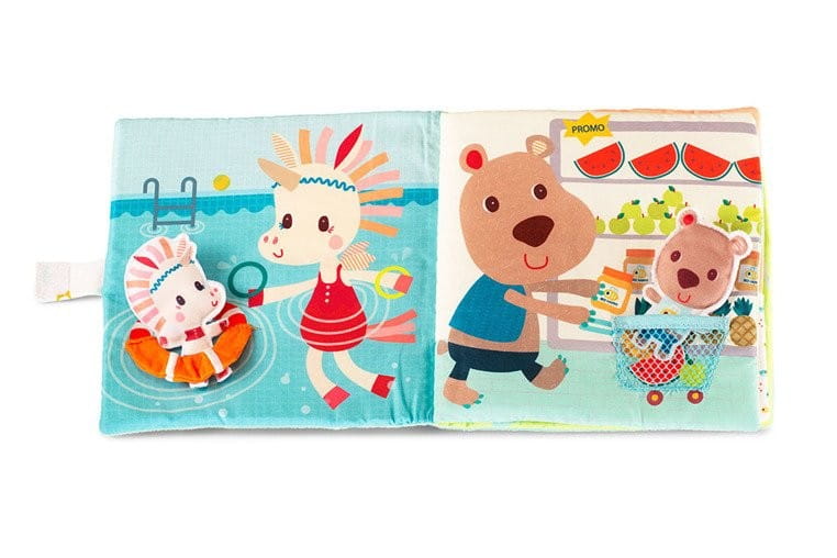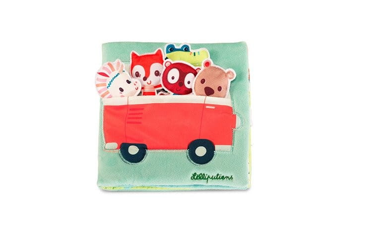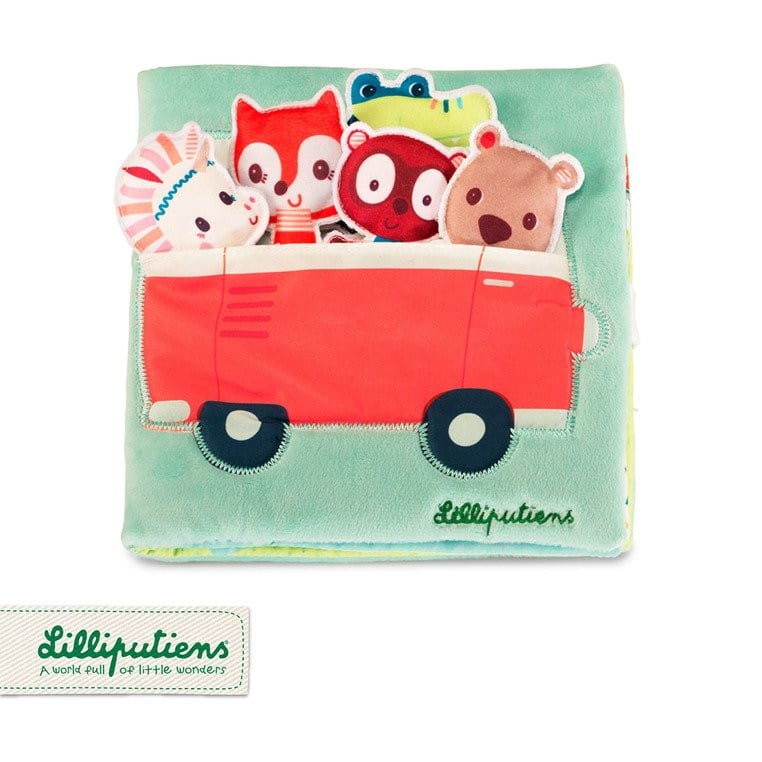 Pierwsza książeczka dla dzieci belgijskiej firmy Lilliputiens jest miękka, bezpieczna, aktywizująca oraz wyposażona w 5 pacynek- mini laleczek. Louise i przyjaciele podróżują czerwonym autobusem, na każdej stronie poznajemy przygody jednego ze zwierzątek: pobyt na basenie, zakupy w sklepie, porę obiadu, oraz zabawę na placu zabaw. Dzieci mogą dopasowywać małe przytulanki do odpowiednich scenek, a na każdej stronie jest wyjątkowa kieszonka, w którą można włożyć pacynkę. Na placu zabaw spotykają sę wszyscy przyjaciele.