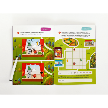 Różnorodne zadania przygotowują do nauki pisania, liczenia i kodowania bez komputera, rozwijają koncentrację i spostrzegawczość, a także ćwiczą pamięć wzrokową i orientację w przestrzeni.