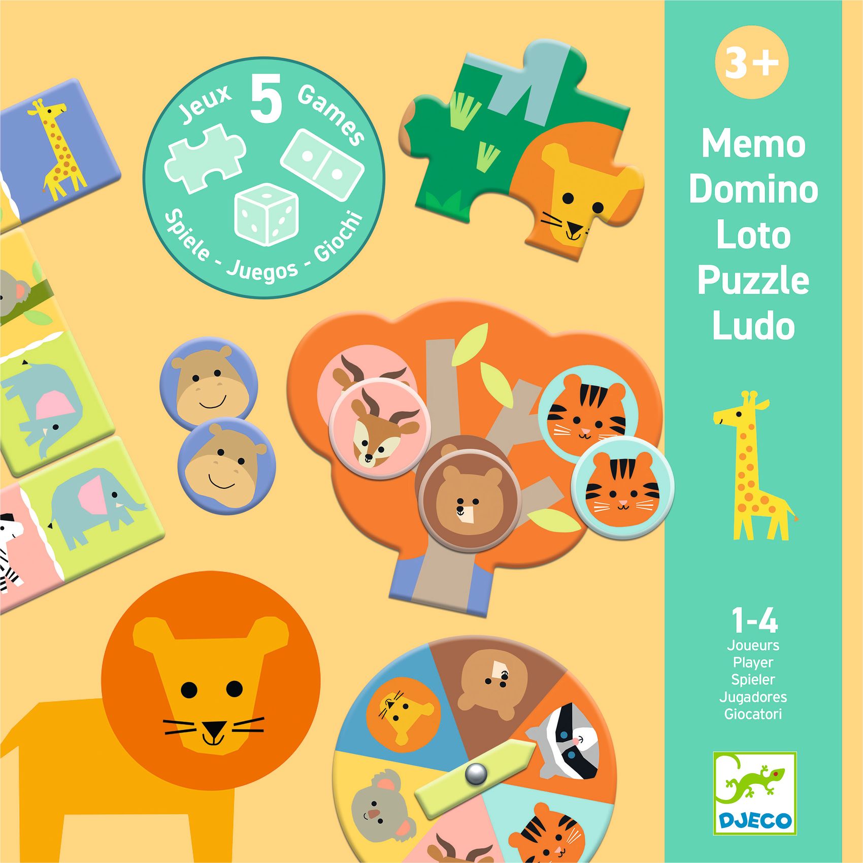 Djeco gry planszowe zestaw 5 w 1 memory, lotto, domino, puzzle, mini chińczyk