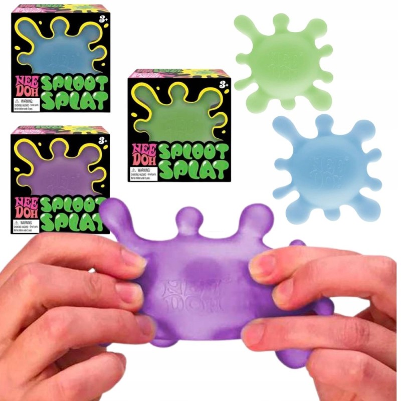 Sploot Splat Needoh to miękki gniotek, posiada elastyczne wypustki, które można rozciągać i ugniatać dla jeszcze większej przyjemności sensorycznej. SplootSplat to po prostu splat, który „splootuje” – czyli rozciąga się, ugniata, rozlewa i wraca do formy na nowo.
