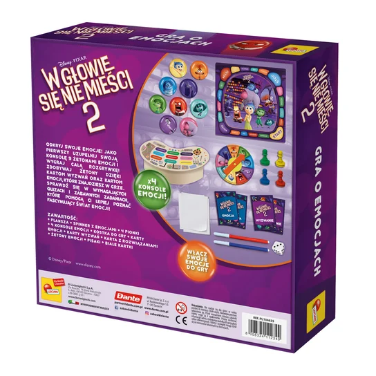 Gra inspirowana filmem animowanym „W głowie się nie mieści 2” pozwala dzieciom poznać, nazywać i oswajać własne emocje w formie zabawy. W pudełku znajdują się karty i zadania, które angażują całą rodzinę i pomagają w rozmowie o uczuciach. To świetne narzędzie wspierające rozwój emocjonalny dzieci, a jednocześnie okazja do wspólnego spędzania czasu.