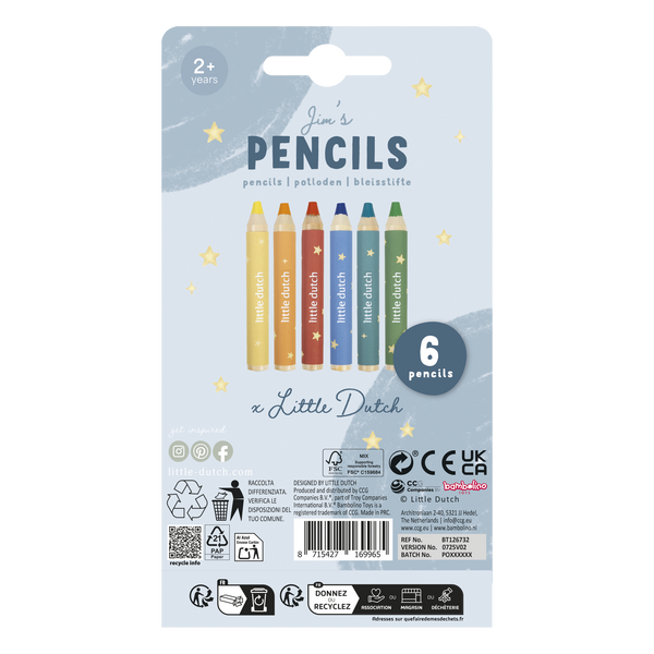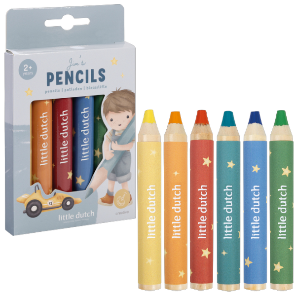 Grube kredki dla małych dzieci 6 kolorów Jim & Friends Little Dutch
