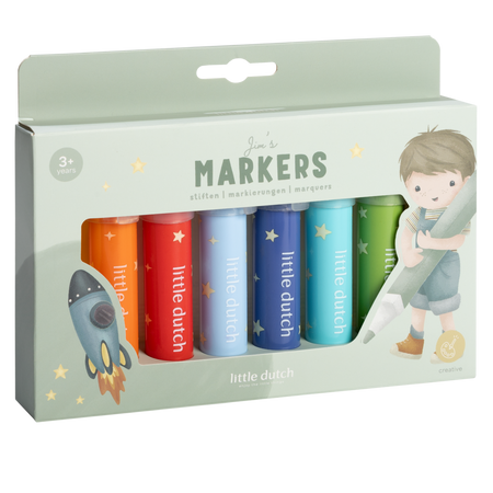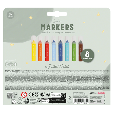 Grube markery pisaki 8 kolorów Jim & Friends Little Dutch