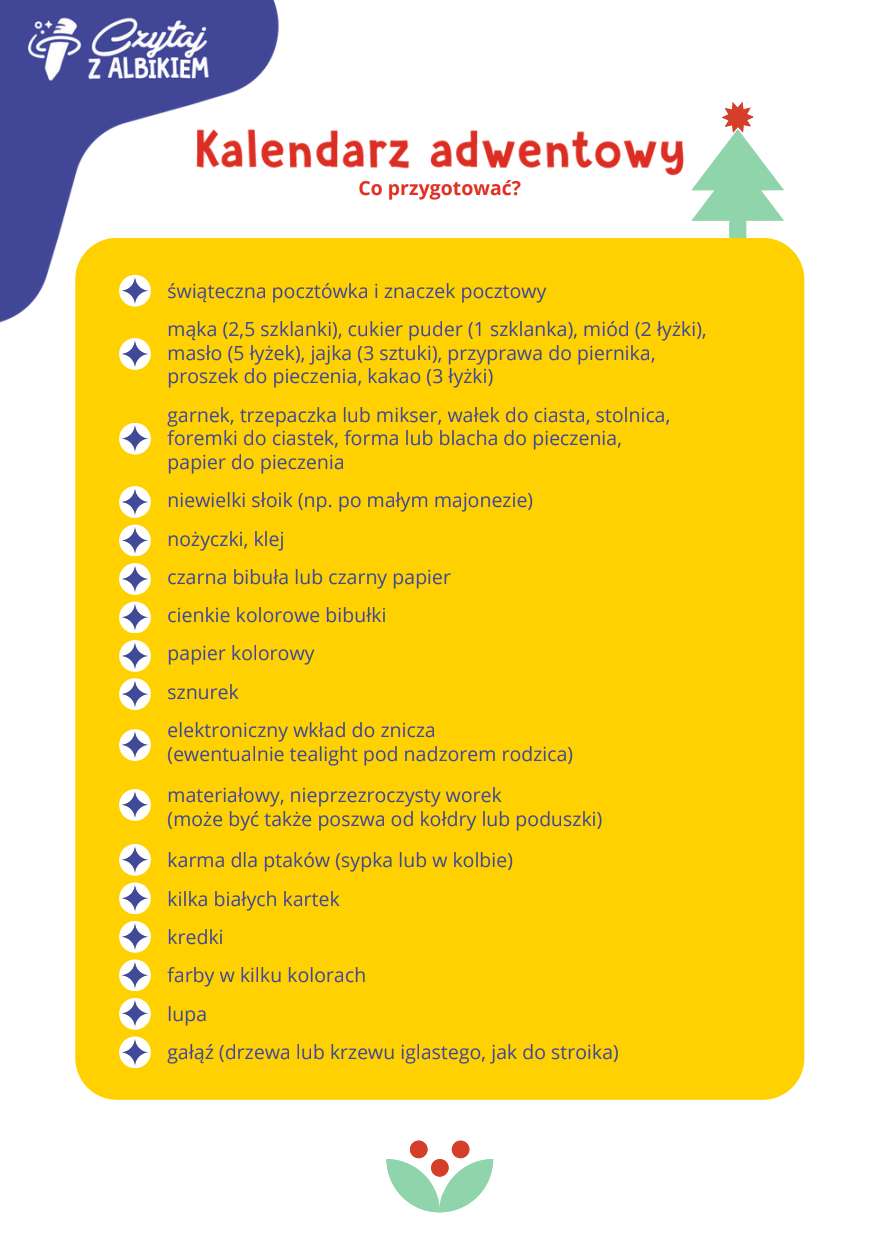 Każdego dnia dziecko otworzy jedno okienko kalendarza, by dowiedzieć się, jakie zadanie zaplanował dla niego Albik. Czas oczekiwania na narodziny Jezusa będzie jeszcze większą przygodą.