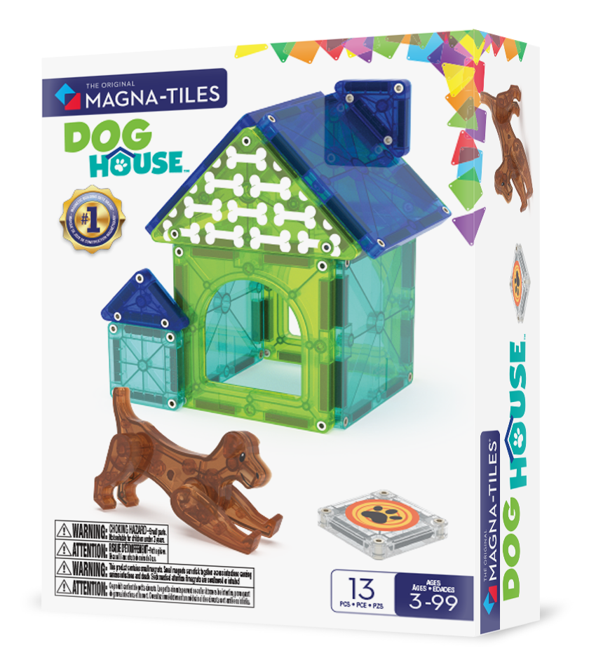 Każdy piesek potrzebuje własnego domku. Pozwól dziecku na kreatywną zabawę z zestawem 13 oryginalnych klocków magnetycznych MAGNA-TILES i kudłatym przyjacielem. Śmiało, puśćcie wodze fantazji i zaproście go na wspólne przygody! Specjalna miseczka, ochronny daszek, gustowne wejście i motyw smacznych kostek sprawią, że pieskowi będzie przytulnie, a dziecku – bardzo wesoło.