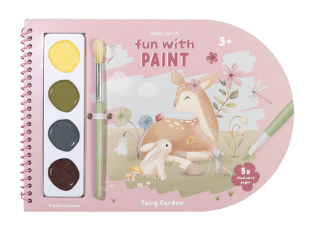 Kolorowanka z farbami akwarelowymi Fairy Garden od Little Dutch to świetny pomysł na twórczą zabawę! Wesoła książeczka zachęca maluchy do malowania, odkrywania i tworzenia. Pięć ilustrowanych stron pełnych przygód w bajkowym ogrodzie i dwadzieścia pięć pustych arkuszy to mnóstwo miejsca na wyobraźnię i własne prace artystyczne. Do książeczki dołączony jest pędzel i cztery farby akwarelowe. Cały zestaw zebrany jest w wygodnej formie zeszytu na spirali. Zestaw kolorowanek z farbami akwarelowymi wpłynie na rozwój kreatywności, motoryki małej i koordynacji ręka-oko. Świetnie sprawdzi się jako uzupełnienie pozostałych akcesoriów plastycznych od Little Dutch.