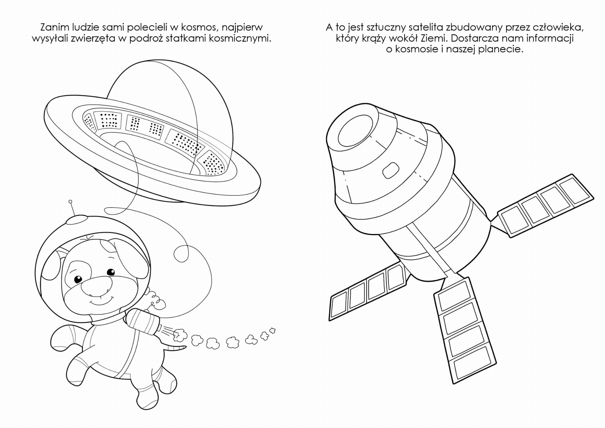 Kolorowanka z Naklejkami Kosmos to świetny pomysł na spędzenie czasu w domu, zabranie książeczki ze sobą w podróż, wypełnienie wolnego czasu w poczekalni. Kolorowanka dla najmłodszych posiada duże, czytelne obrazki pojazdów kosmicznych, astronautów, satelitów, planet, a także UFO. Dzieci nie tylko kolorują kredkami lub malują farbami, poznają także ciekawostki. Rodzice mogą przeczytać krótki opis zawierający najważniejsze informacje. W kolorowance znajduje się aż 74 naklejki, które dzieci mogą przyklejać w dowolne miejsca.