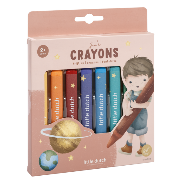 Pozwól swojemu dziecku odkrywać świat kolorów z uroczymi kredkami woskowymi Jim & Friends od Little Dutch! To idealny zestaw pierwszych kredek, który łączy zabawę z nauką i rozwijaniem małej motoryki.