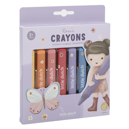 Pozwól swojemu dziecku odkryć radość tworzenia z uroczymi kredkami woskowymi Rosa & Friends od Little Dutch! Zestaw zawiera 8 kredek w pastelowych kolorach z końcówkami w kształtach inspirowanych kolekcją Fairy Garden - każda z nich zachwyca swoim wyglądem i zaprasza do zabawy.