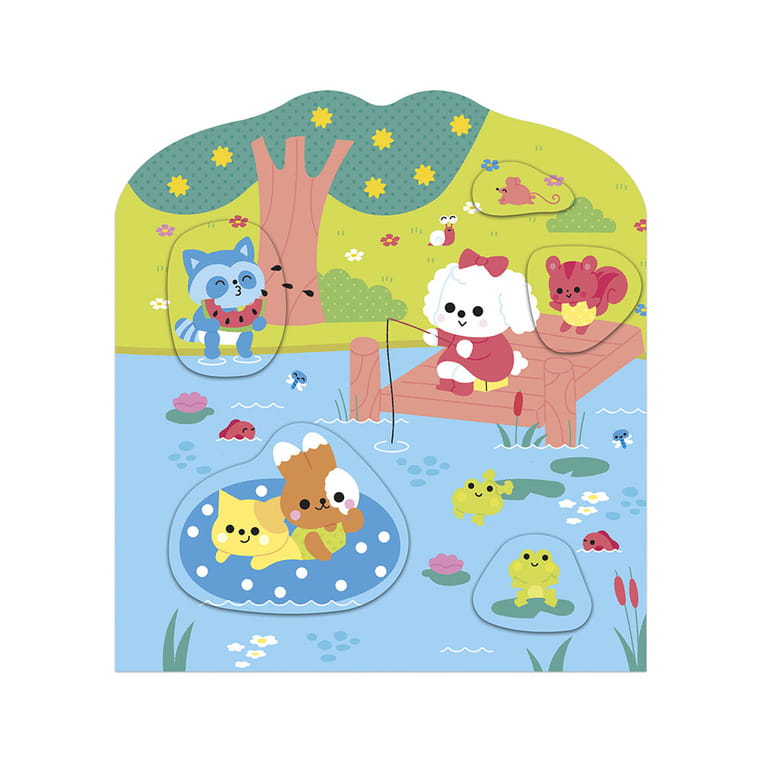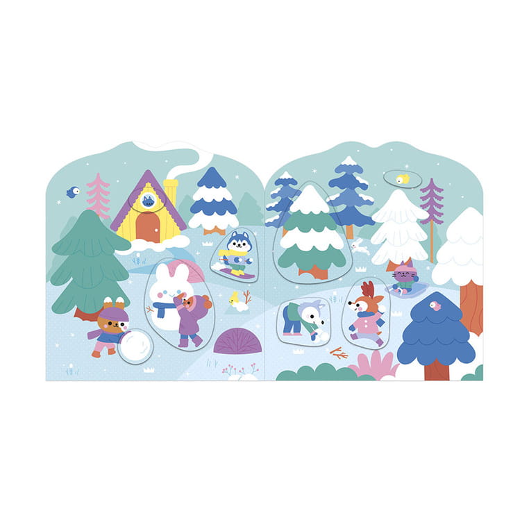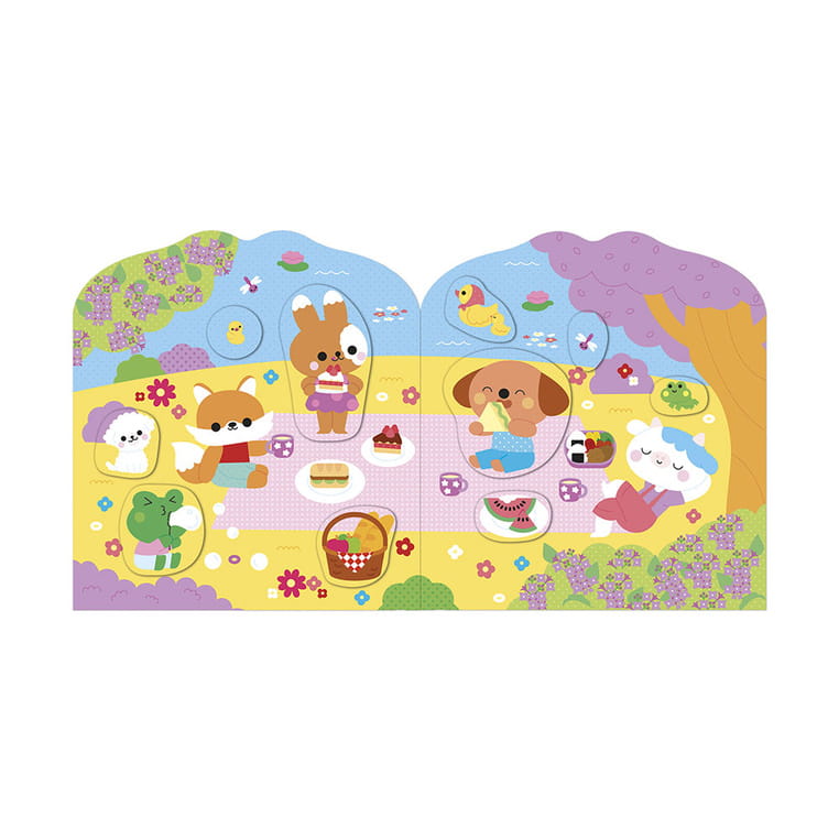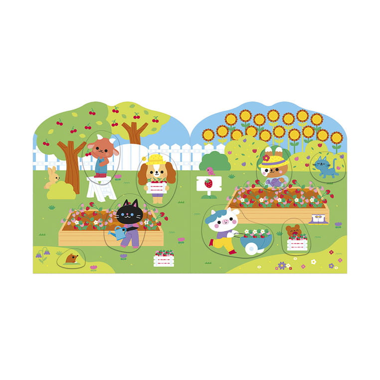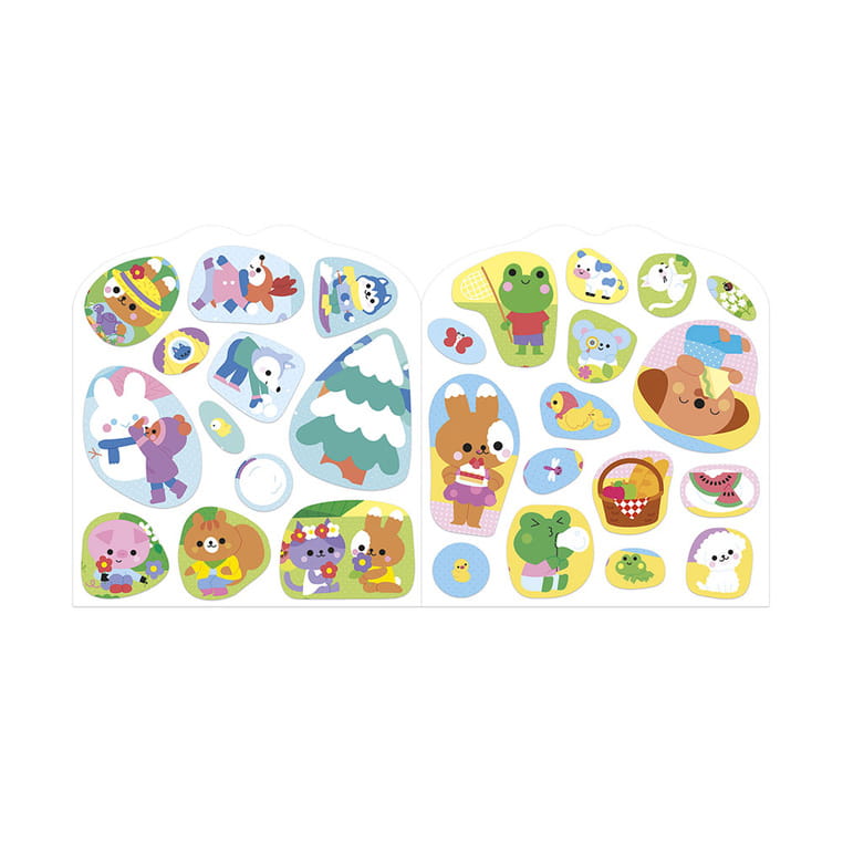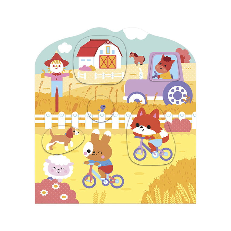 Książeczka do wyklejania z naklejkami Wieś francuskiej marki JANOD. Książeczka zawiera wewnątrz 7 różnych scen z pustymi miejscami do wypełnienia naklejkami. Dziecko może śledzić losy bohaterów opowieści – zwierzątek wypełniających różne przydomowe obowiązki – opowiadać o nich i jednocześnie samodzielnie uzupełniać ilustracje załączonymi do książki naklejkami (ponad 50 szt.).
