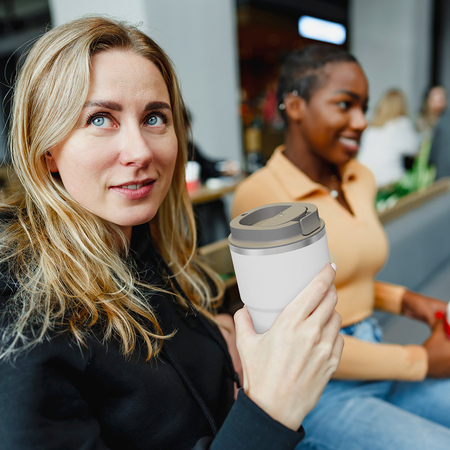 Asobu Pick Me Up to kubek termiczny zaprojektowany z myślą o tych, którzy zaczynają dzień od kawy w ruchu. W pastelowym niebieskim kolorze prezentuje się nowocześnie i elegancko, łącząc stylowy wygląd z codzienną wygodą. Ceramiczna powłoka Puramic™ nie pochłania zapachów ani smaków, a podwójne stalowe ścianki z miedzianą izolacją utrzymują idealną temperaturę napoju przez wiele godzin. To niezawodny towarzysz w samochodzie, biurze i w drodze.